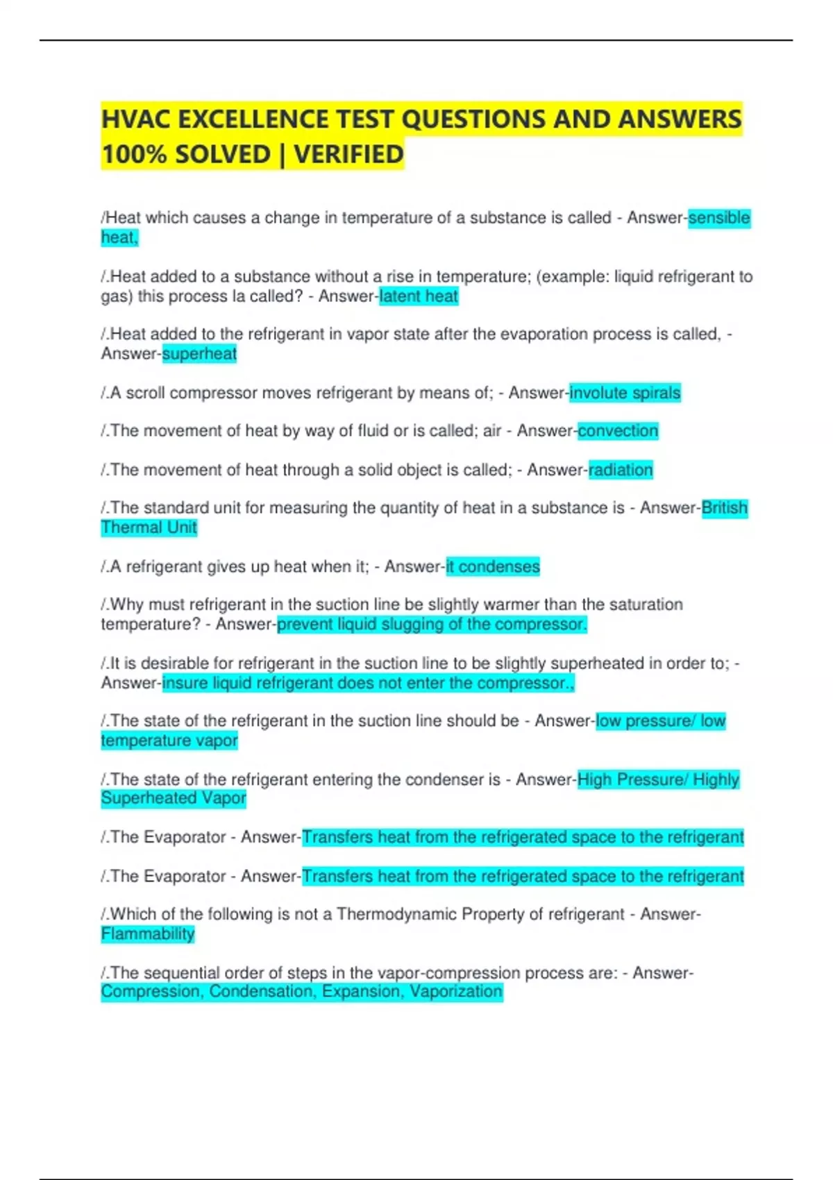 /.The heat removed from the refrigerant by the condenser is - Answer-both sensible and