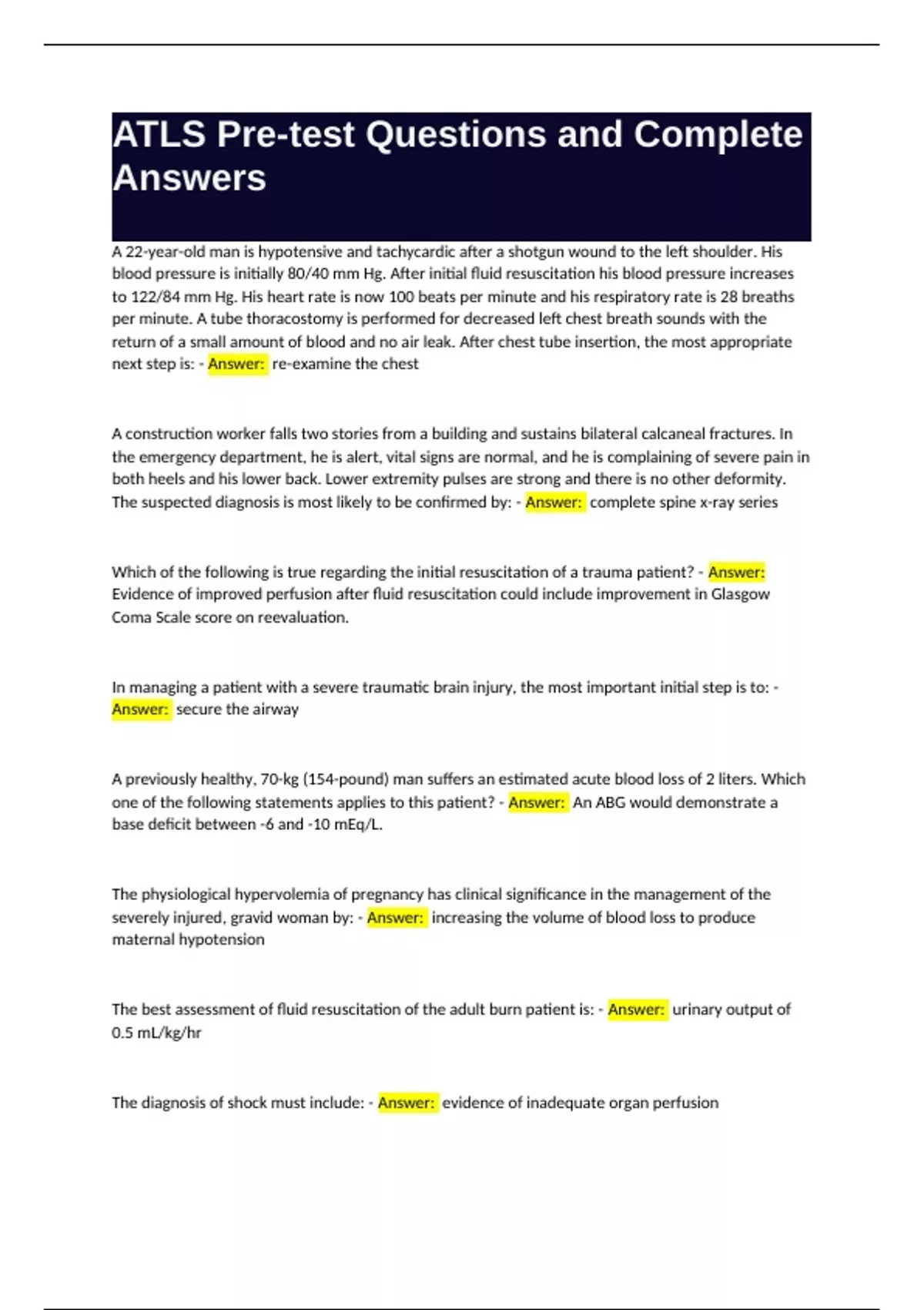 ATLS Pre-test Questions and Complete