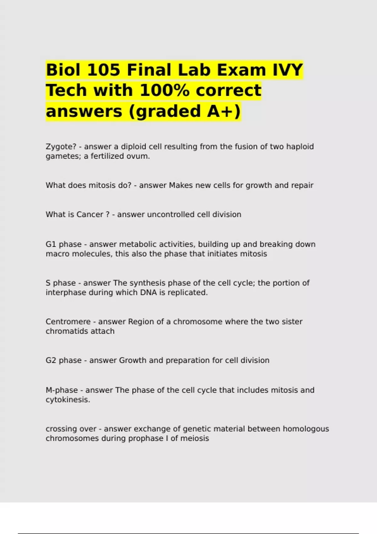 Biol 105 Final Lab Exam IVY