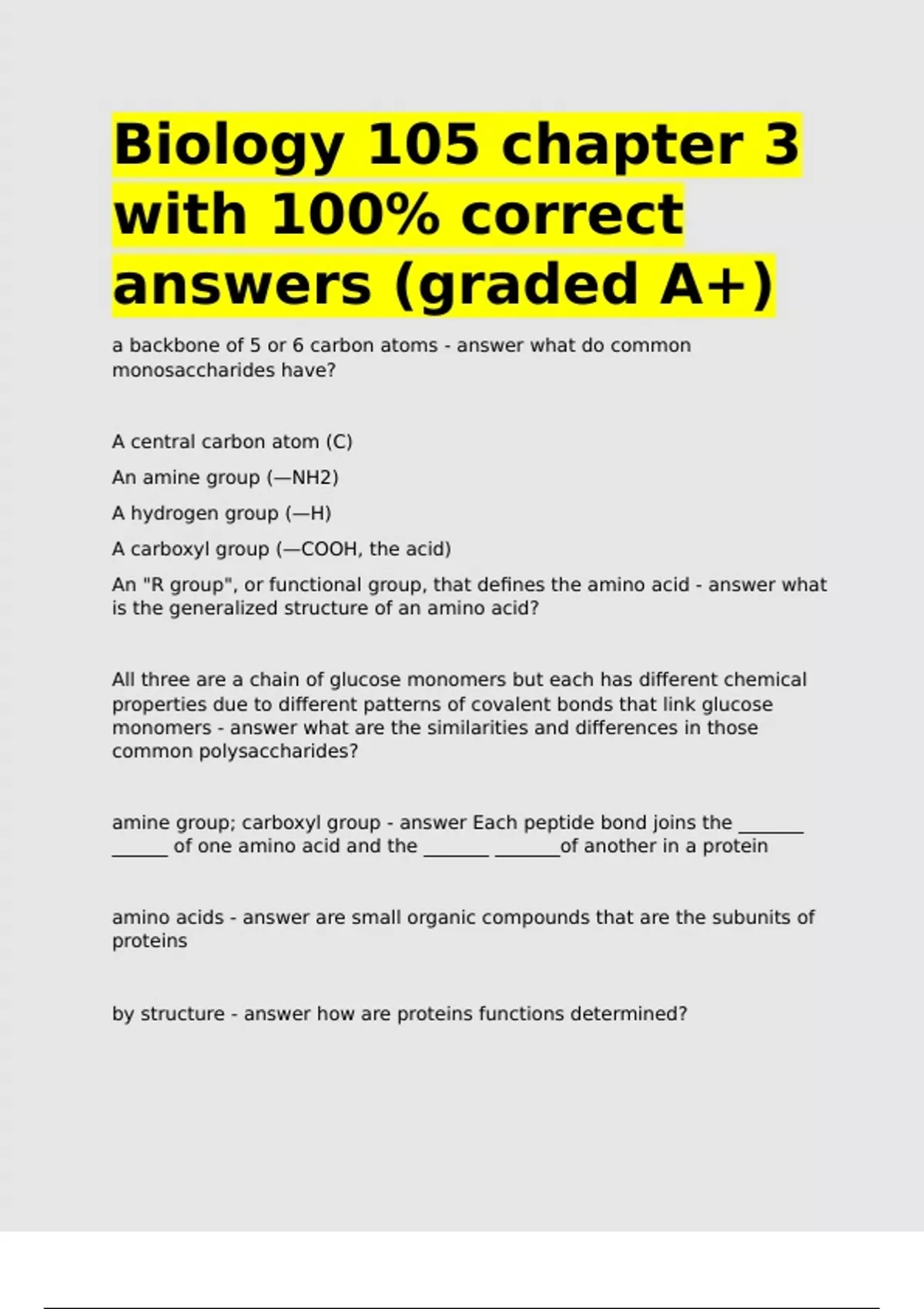 Biology 105 chapter 3 with 100- correct answers (graded A+).