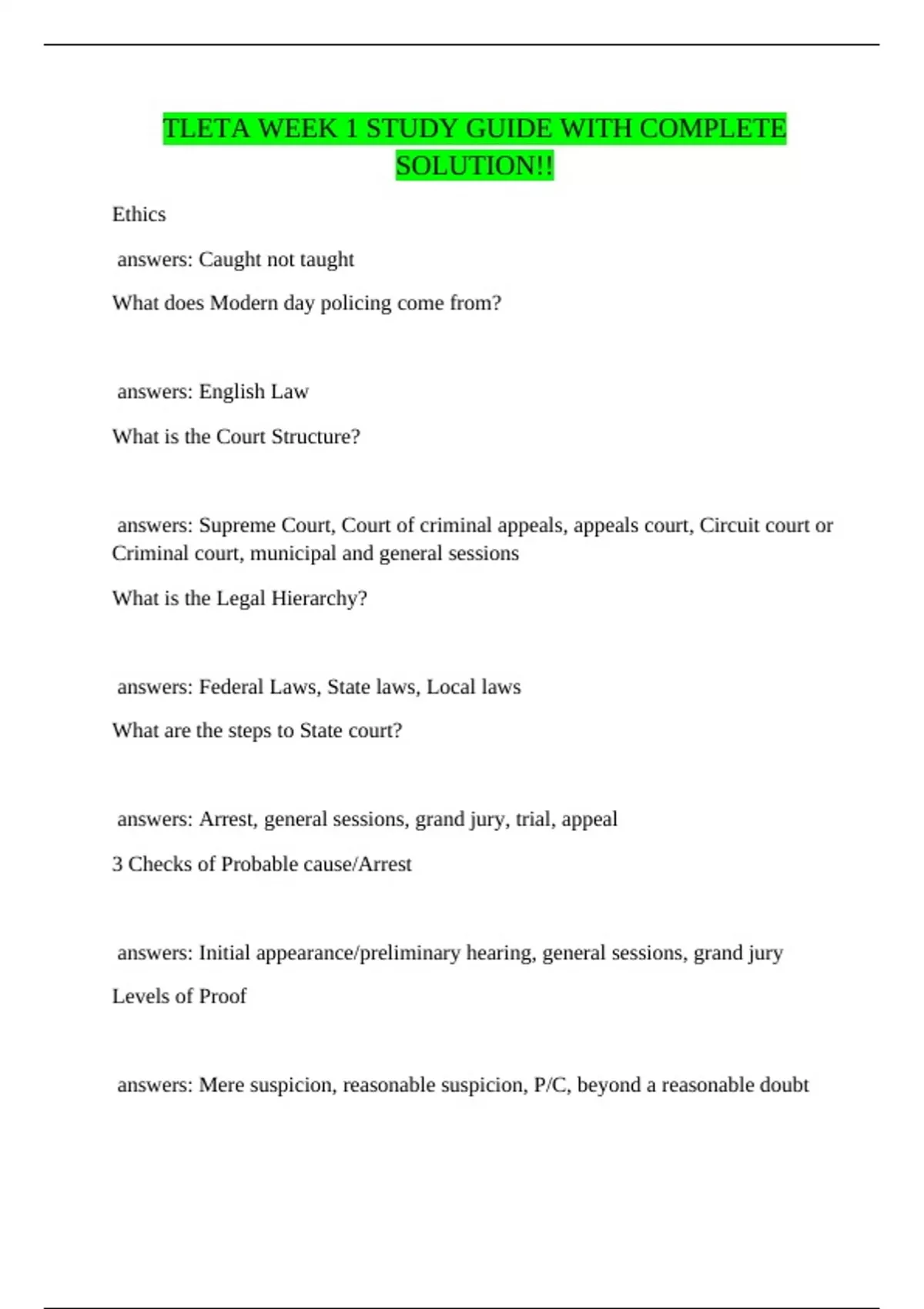 TLETA WEEK 1 STUDY GUIDE WITH COMPLETE