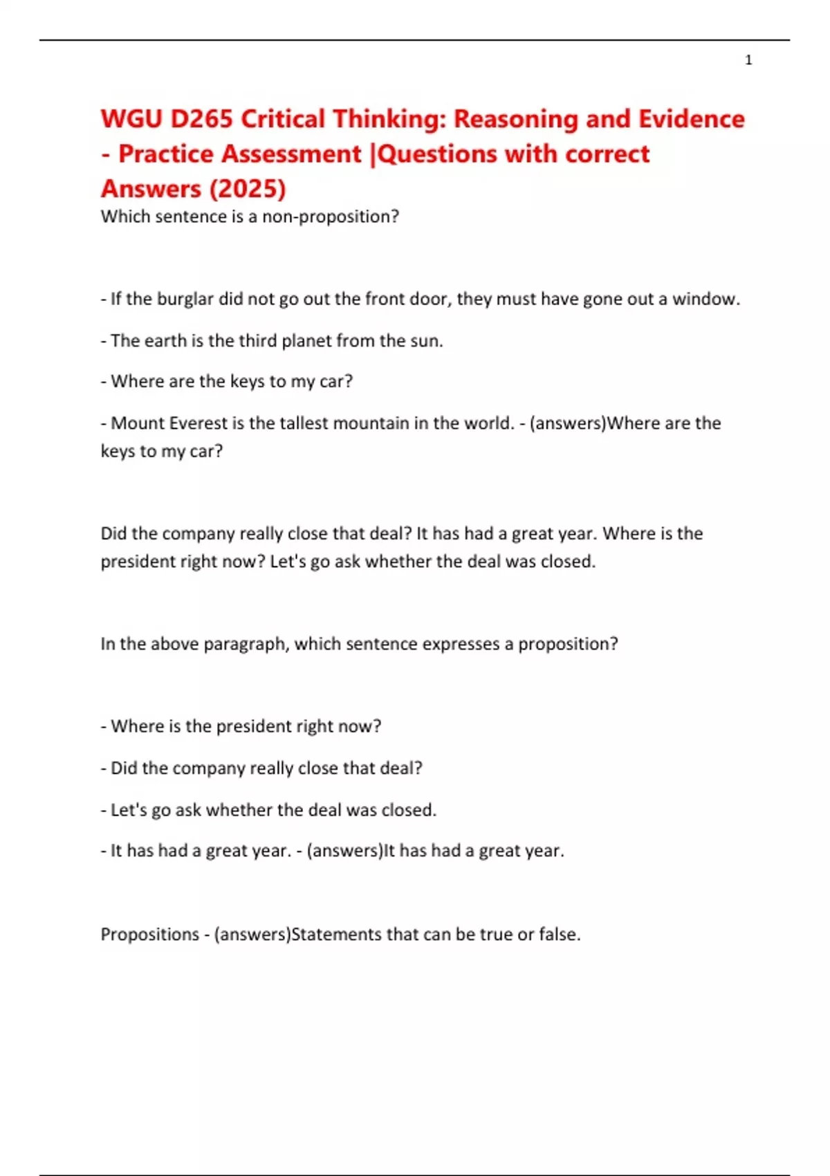WGU D265 Critical Thinking: Reasoning and Evidence