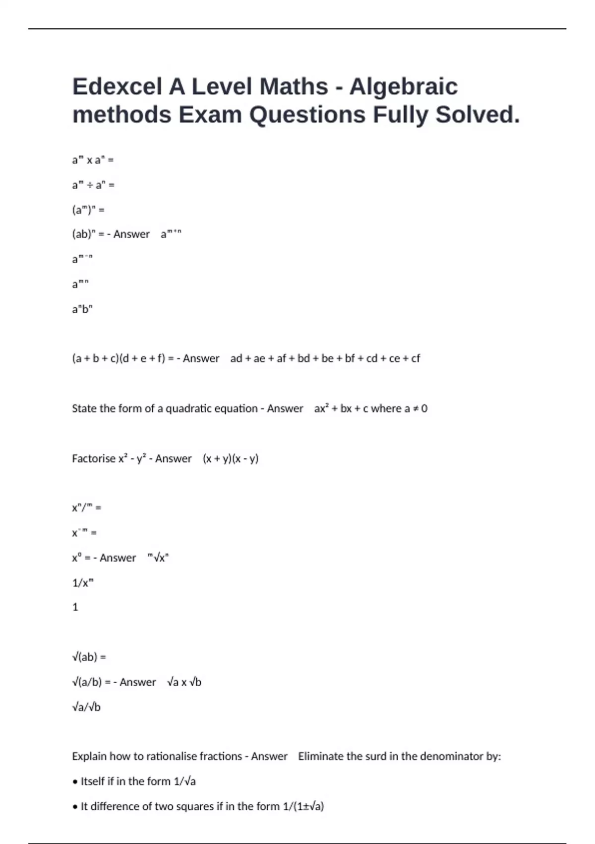 Explain how to rationalise fractions - Answer Eliminate the surd in the denominator by: