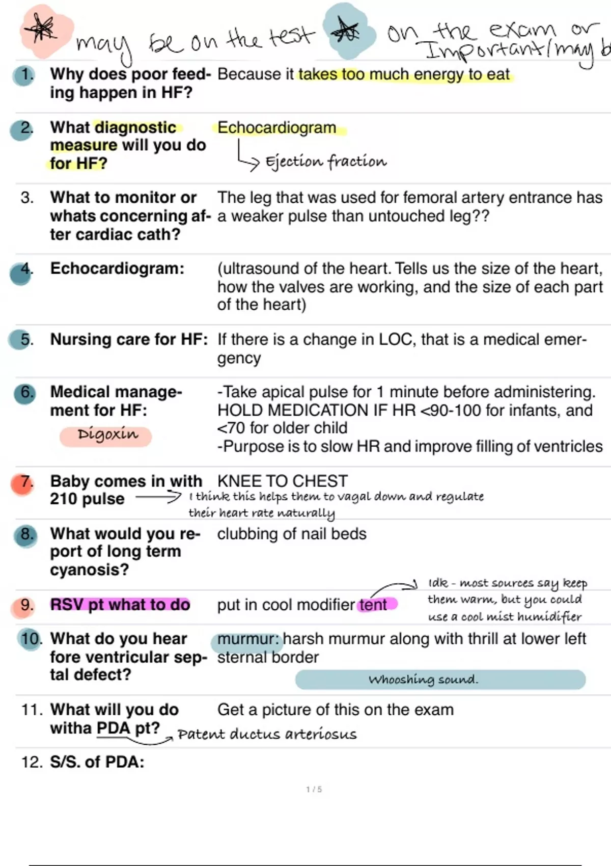 5. Nursing care for HF: If there is a change in LOC, that is a medical emer-