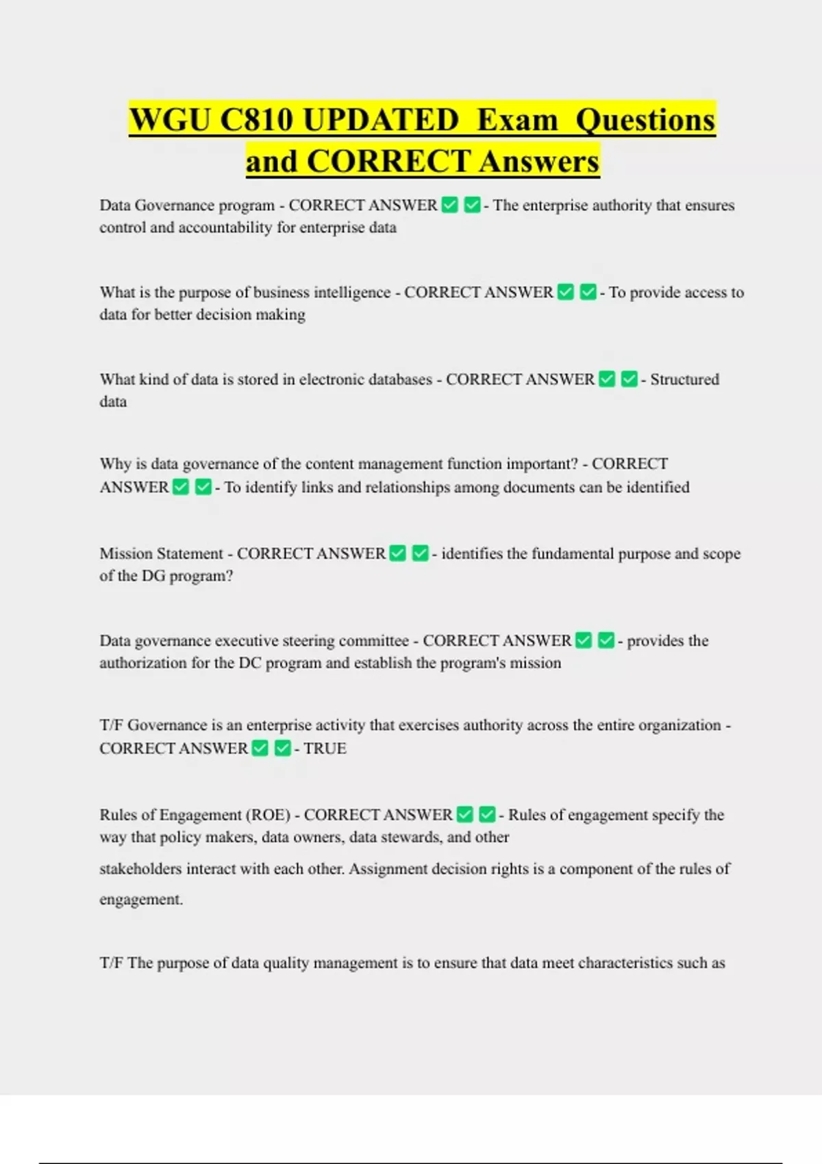 Data Governance program - CORRECT ANSWER - The enterprise authority that ensures