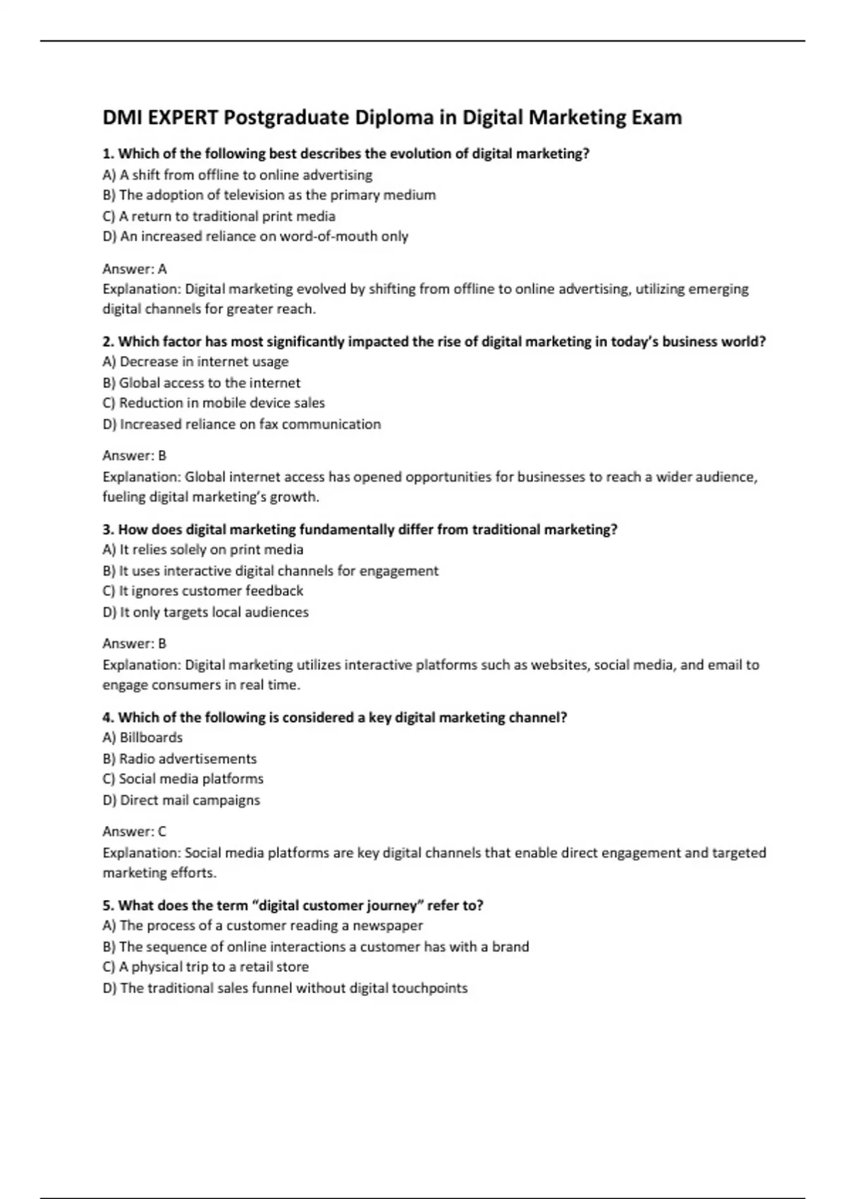 Explanation: Digital marketing evolved by shifting from offline to online advertising, utilizing emerging