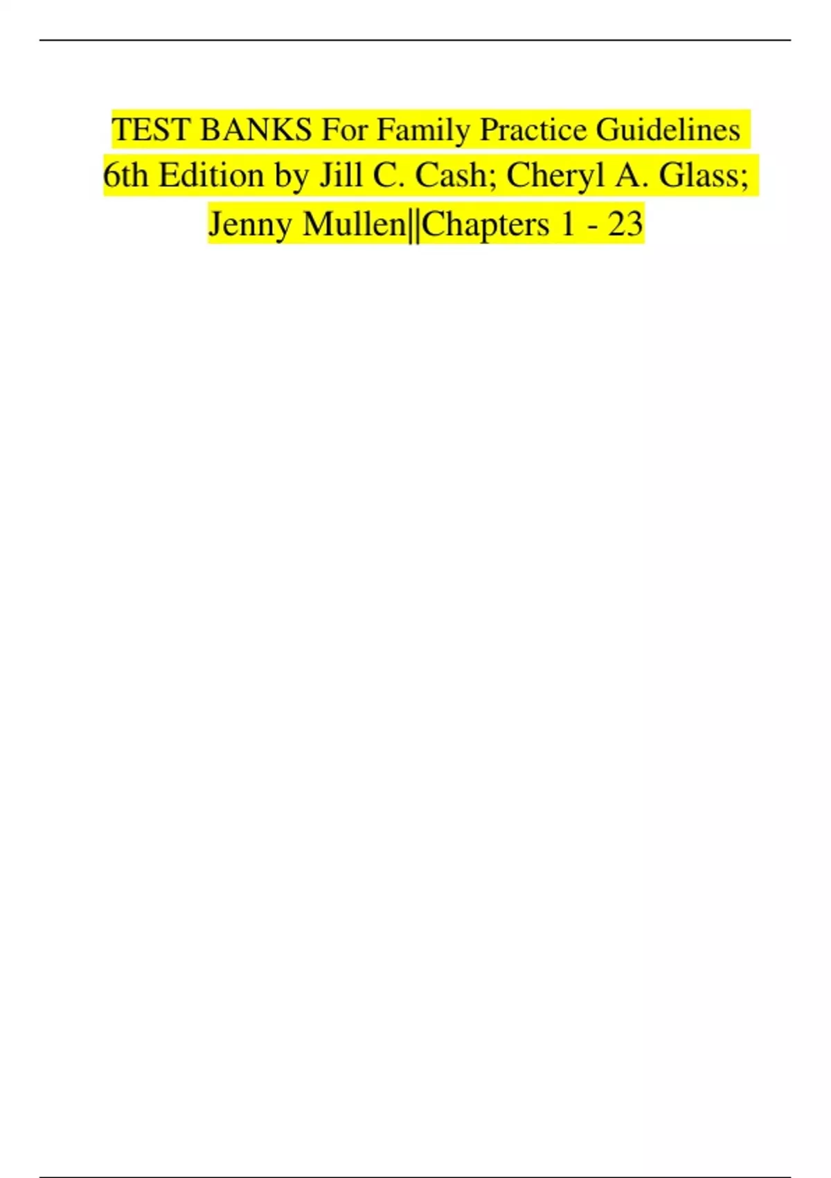TEST BANKS For Family Practice Guidelines 6th Edition by Jill C. Cash; Cheryl A. Glass; Jenny