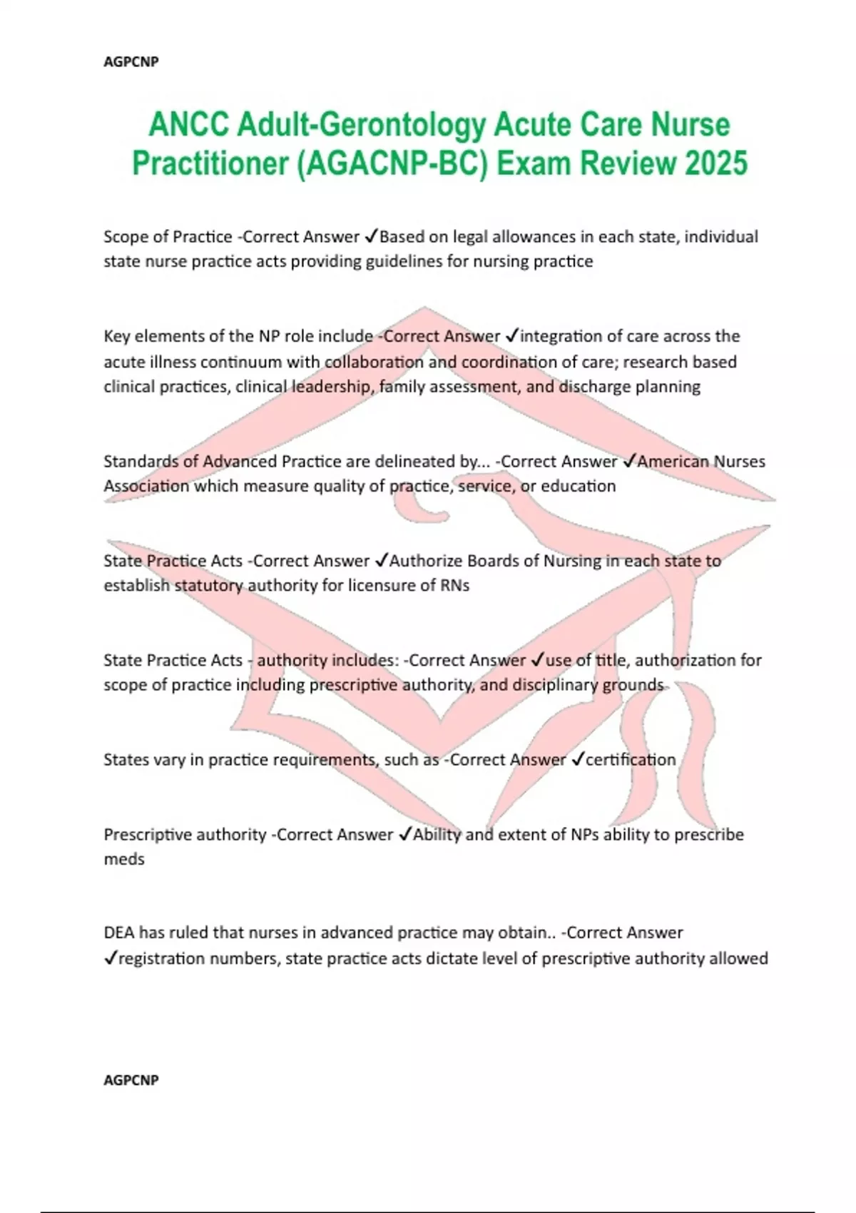 ANCC Adult-Gerontology Acute Care Nurse Practitioner (AGACNP-BC) Exam Review 2025