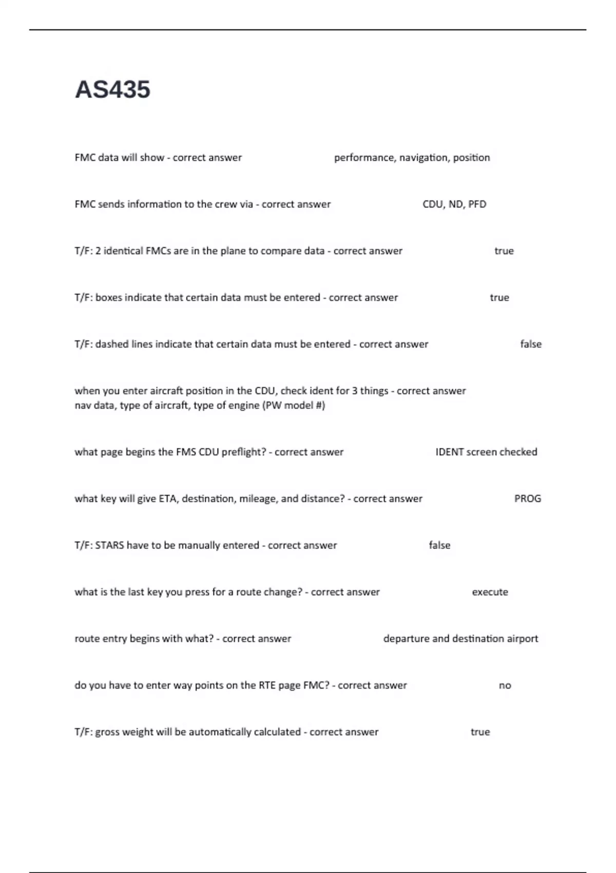 FMC data will show - correct answer performance, navigation, position