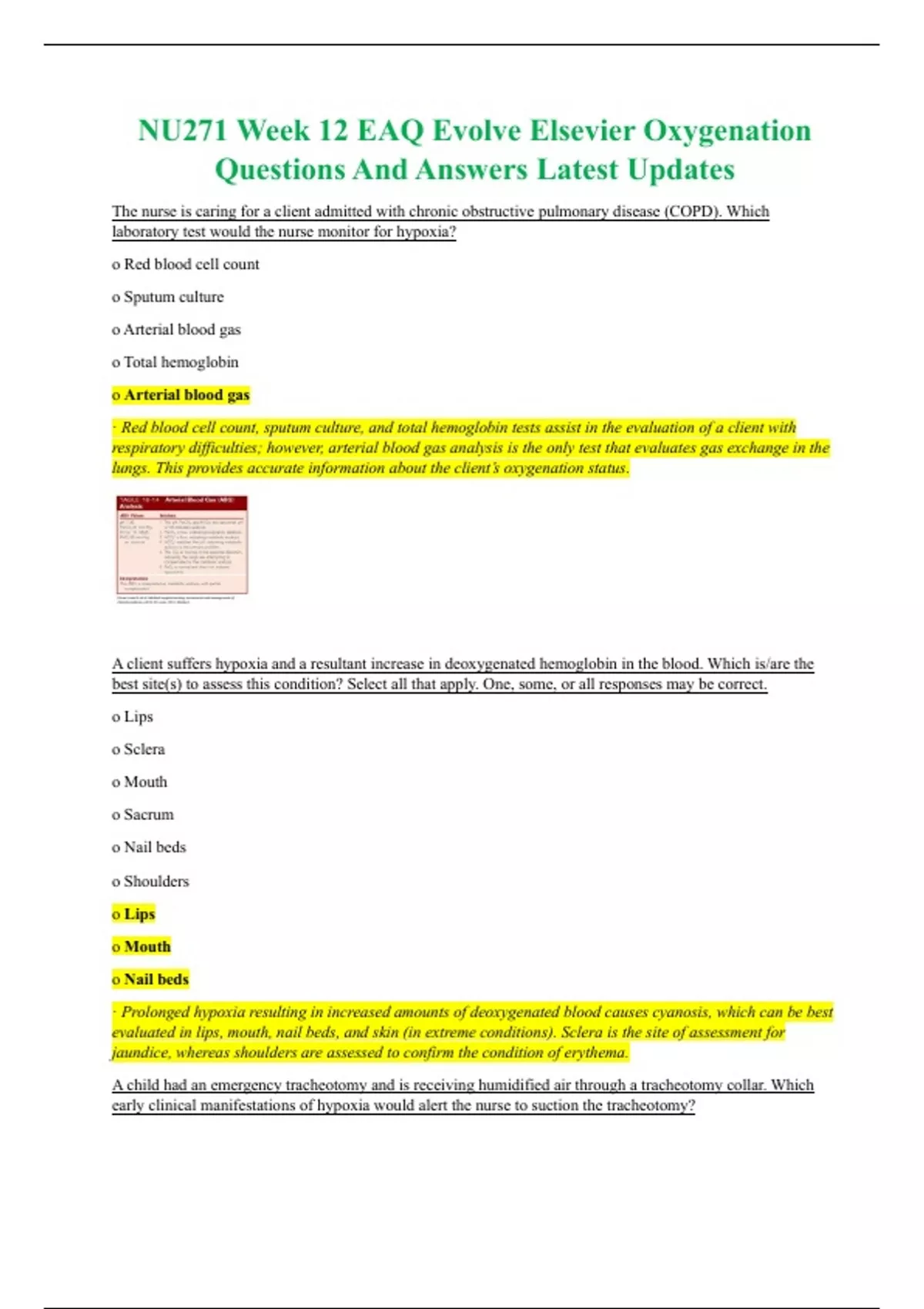 NU271 Week 12 EAQ Evolve Elsevier Oxygenation Questions And Answers Latest Updates