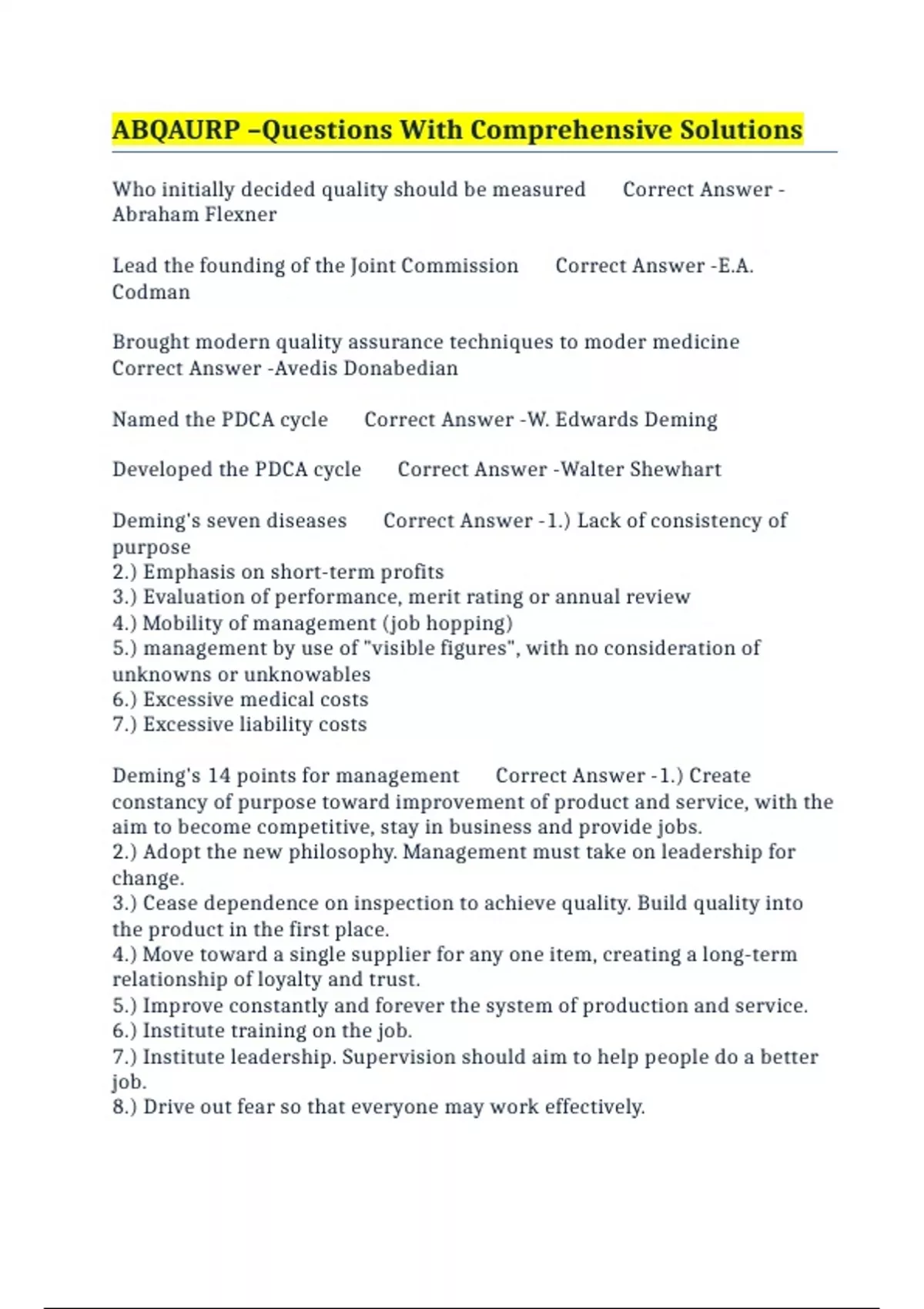 Named the PDCA cycle Correct Answer -W. Edwards Deming