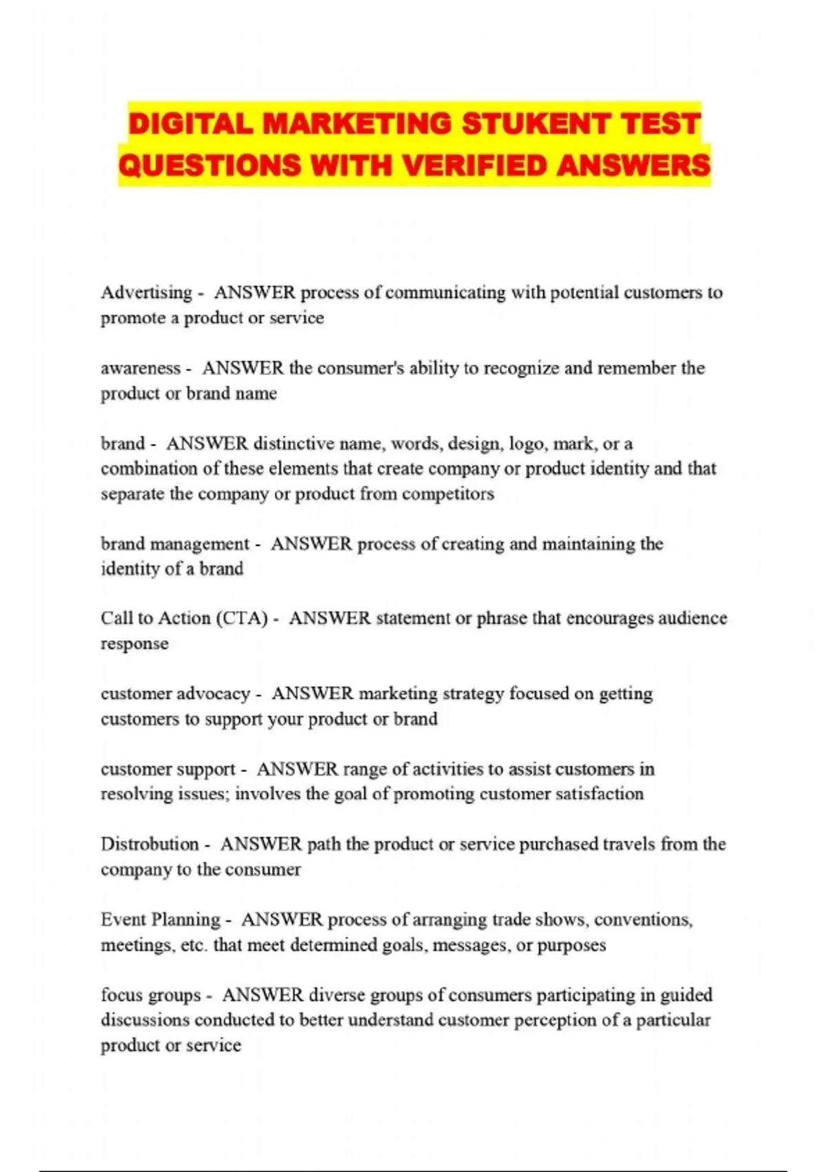 DIGITAL MARKETING STUKENT TEST QUESTIONS WITH VERIFIED ANSWERS