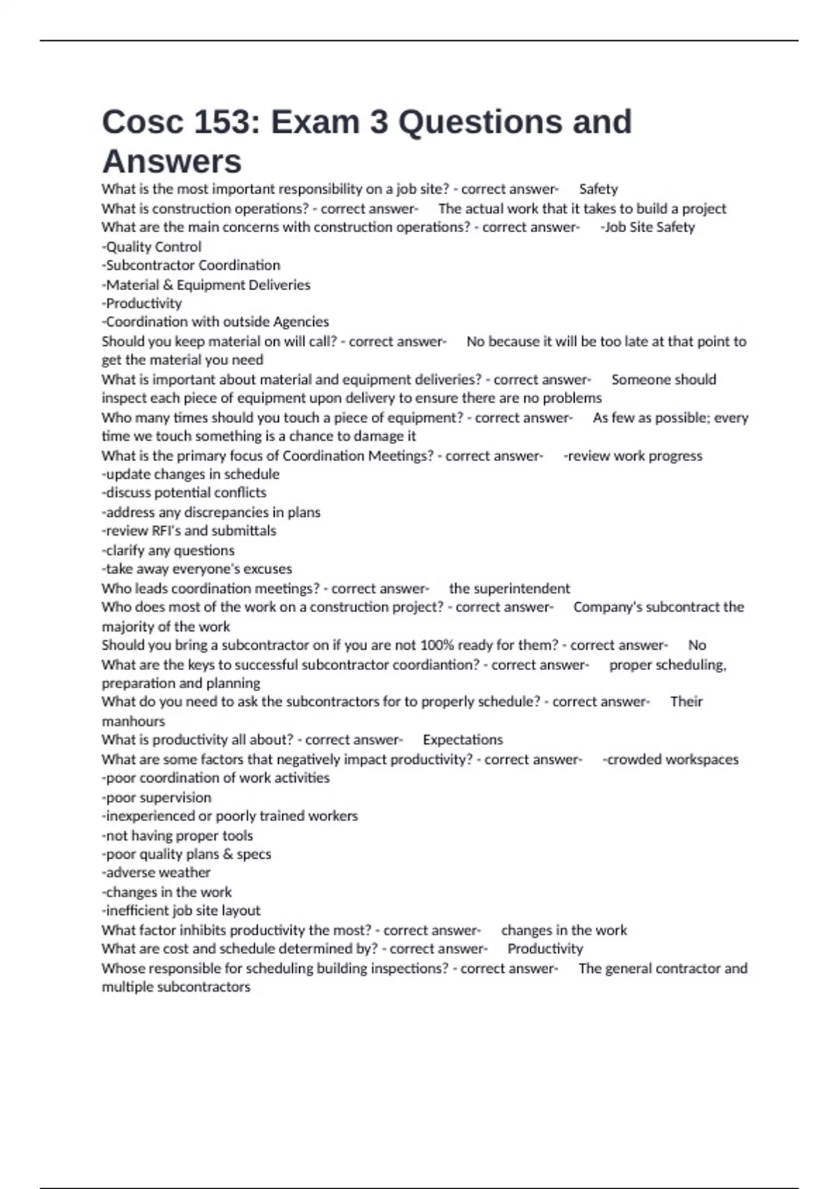 What are the keys to successful subcontractor coordiantion? - correct answer-✅proper scheduling,