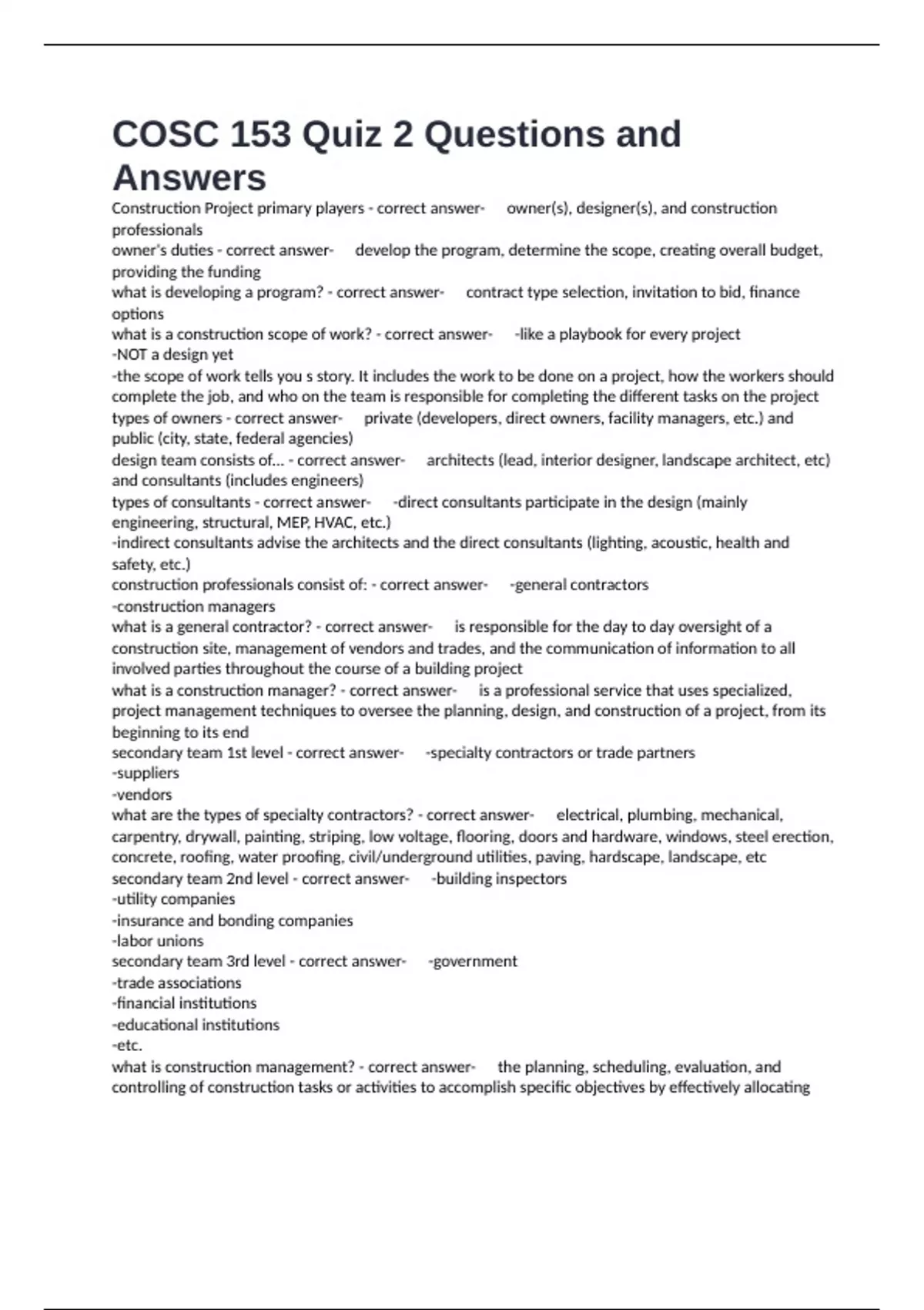 what is a general contractor? - correct answer-✅is responsible for the day to day oversight of a