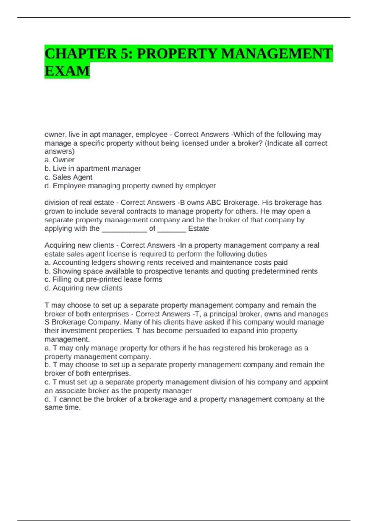a. T may only manage property for others if he has registered his brokerage as a