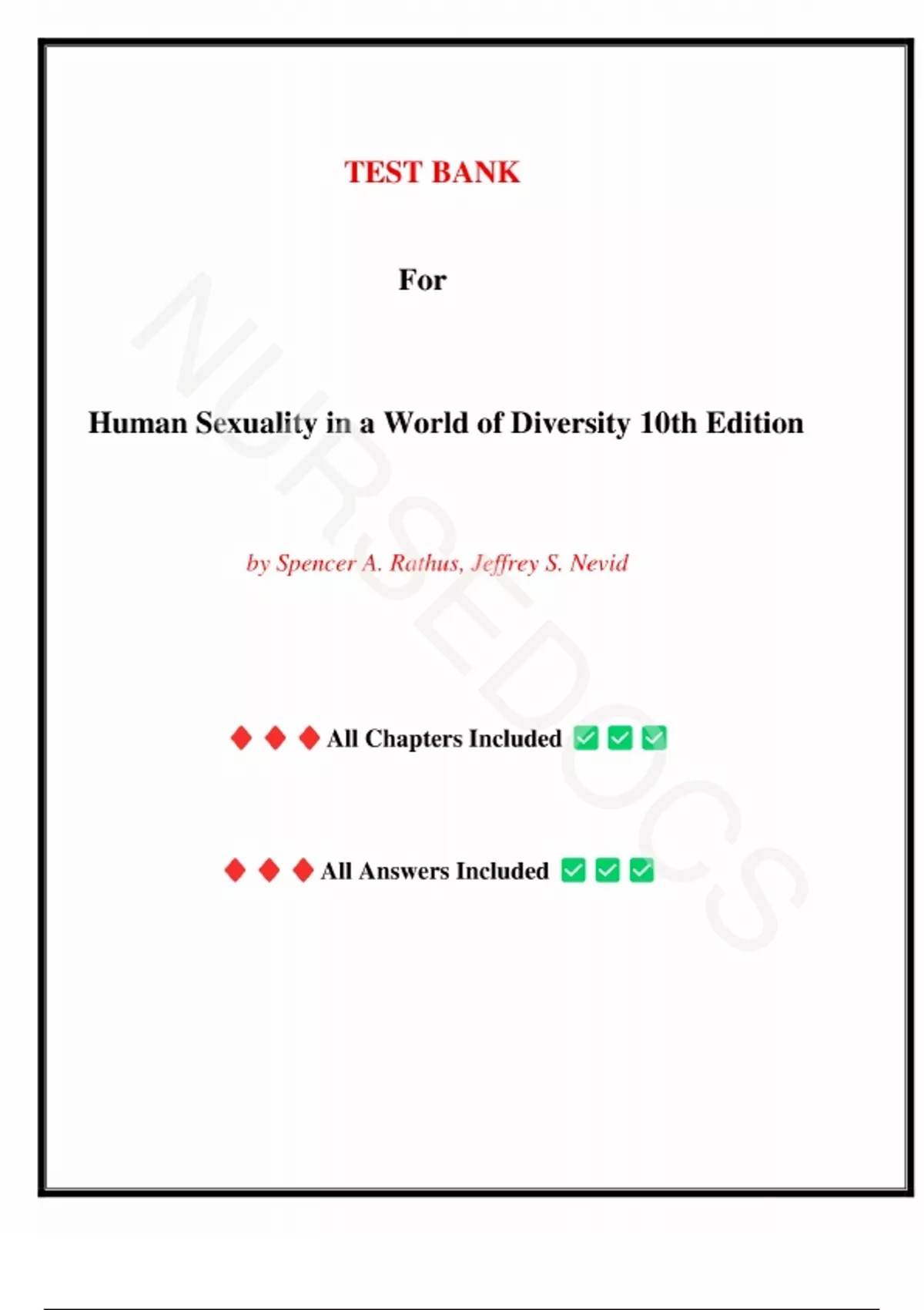 Test Bank - Human Sexuality in a Changing World 10th Edition by Spencer A. Rathus, All Chapters