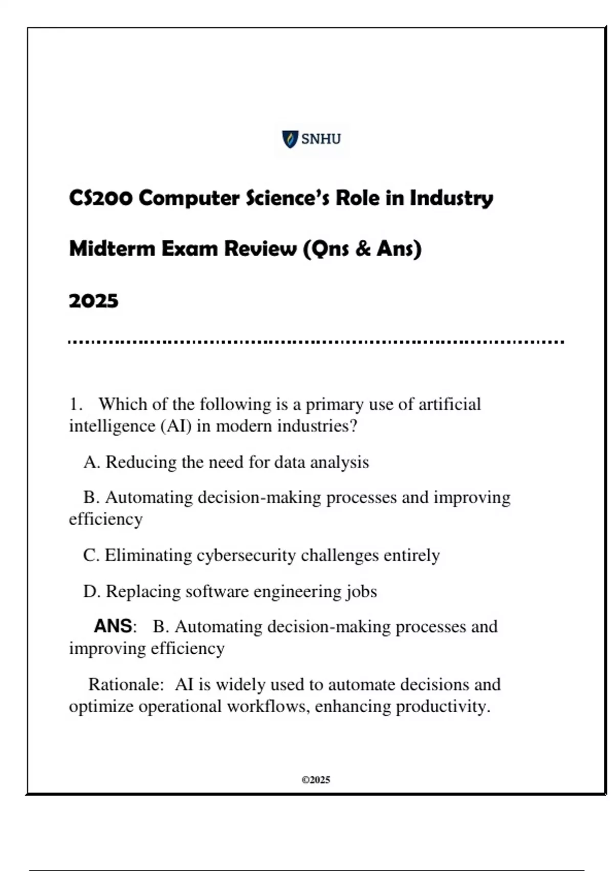 CS200 Comp Sci Role in Industry Midterm Exam Review 2025 (With Solns)CS200 Comp Sci Role in Industry Midterm Exam Review 2025 (With Solns)CS200 Comp Sci Role in Industry Midterm Exam Review 2025 (With Solns)
