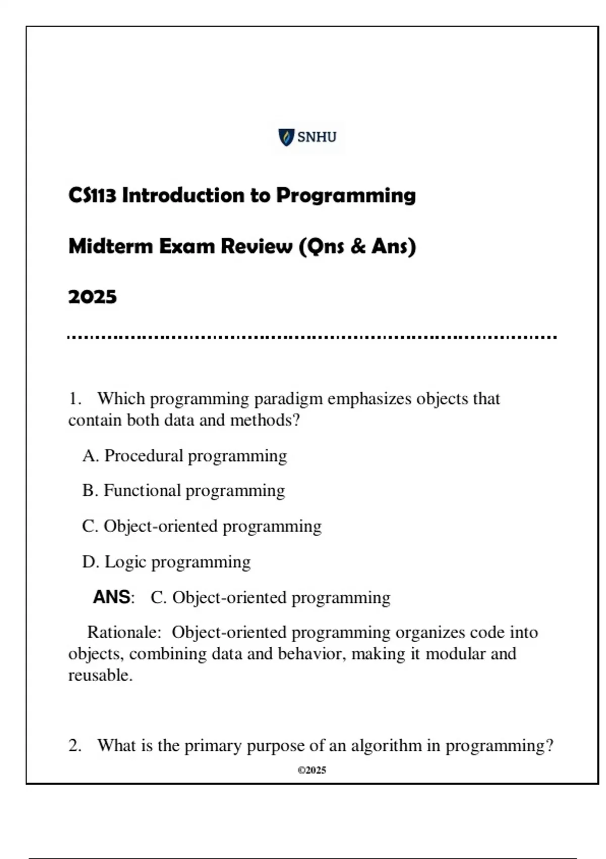 CS113 Intro to Programming Midterm Exam Review 2025 (With SolnsCS113 Intro to Programming Midterm Exam Review 2025 (With SolnsCS113 Intro to Programming Midterm Exam Review 2025 (With Solns