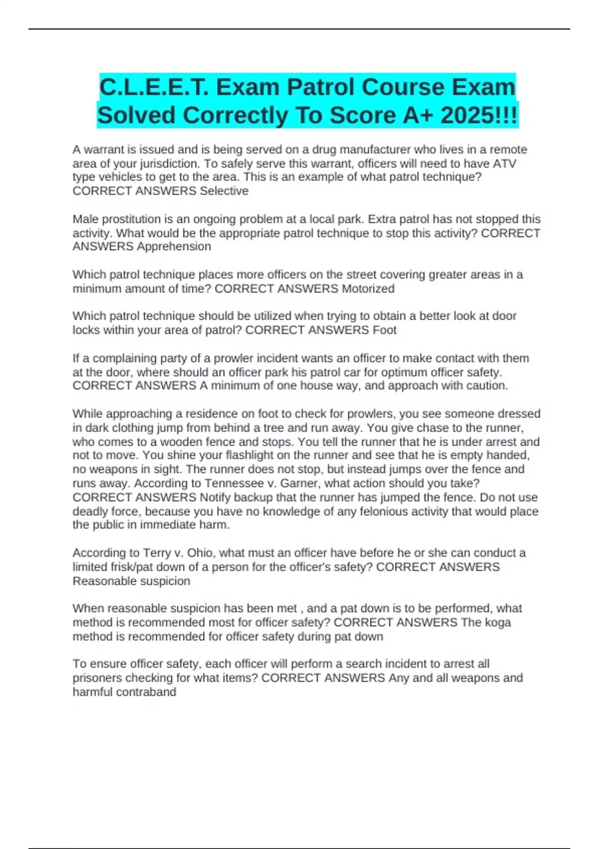 CORRECT ANSWERS Selective