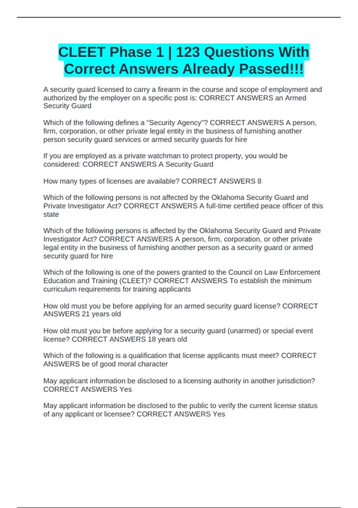 Education and Training (CLEET)? CORRECT ANSWERS To establish the minimum