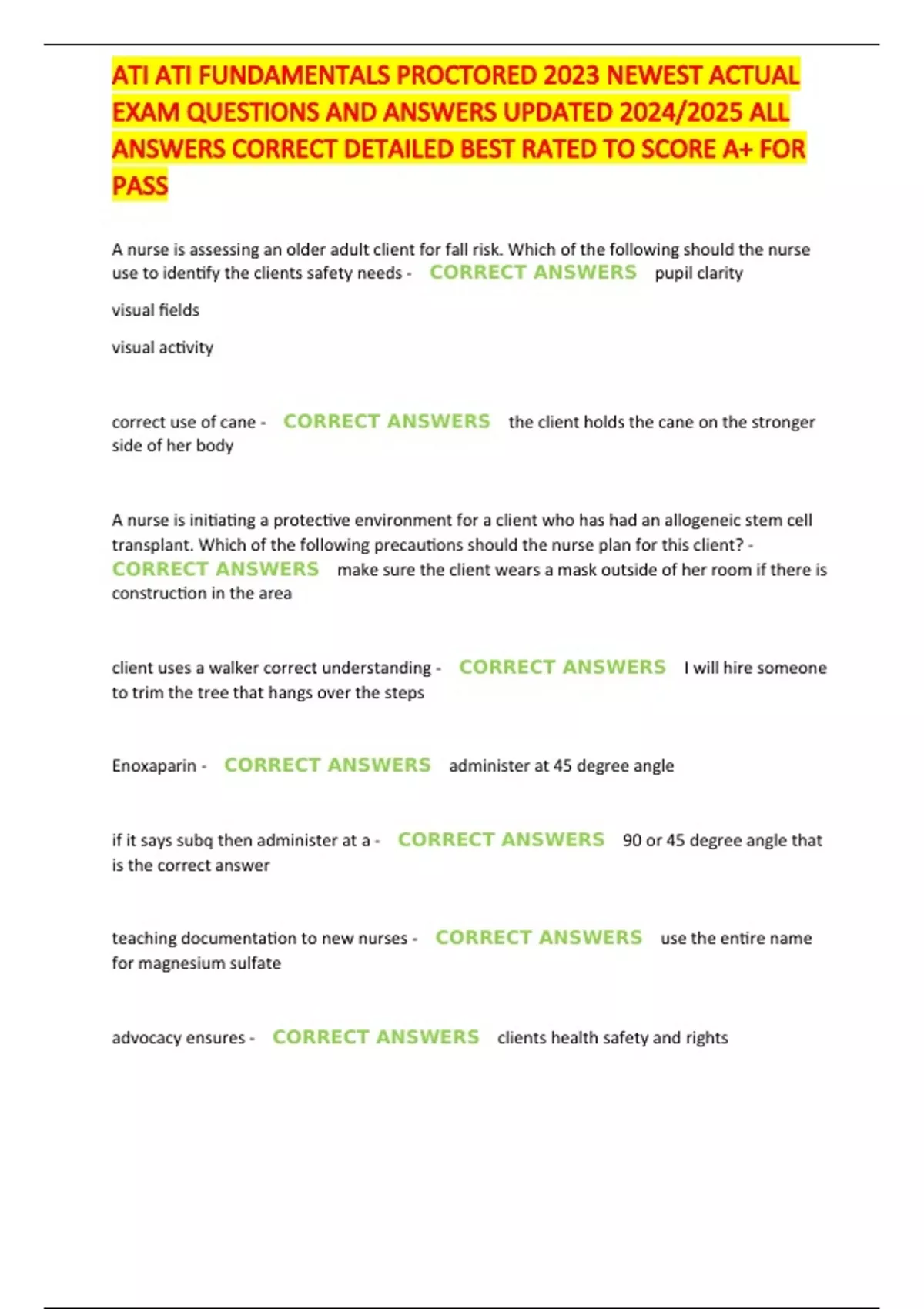 ATI ATI FUNDAMENTALS PROCTORED 2023 NEWEST ACTUAL EXAM QUESTIONS AND ANSWERS UPDATED 2024/2025 ALL ANSWERS CORRECT DETAILED BEST RATED TO SCORE A+ FOR PASS
