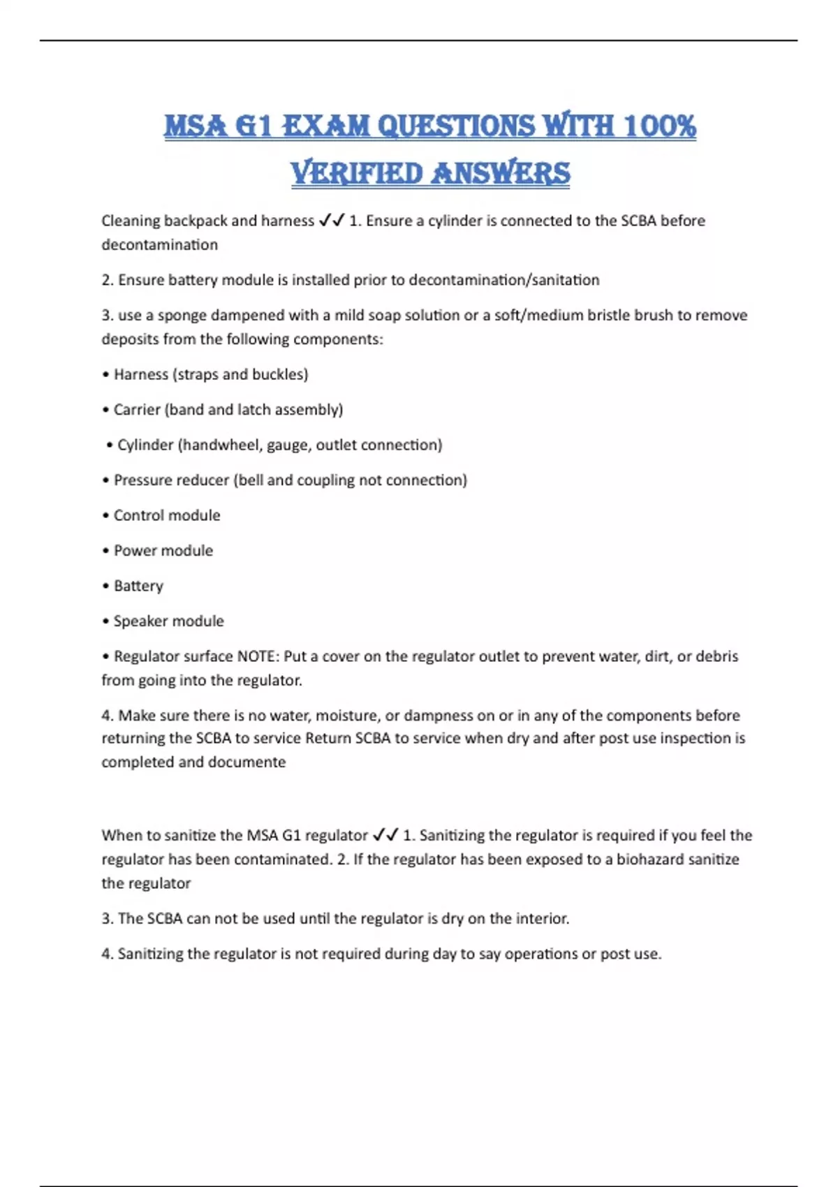 When to sanitize the MSA G1 regulator ✔✔ 1. Sanitizing the regulator is required if you feel the