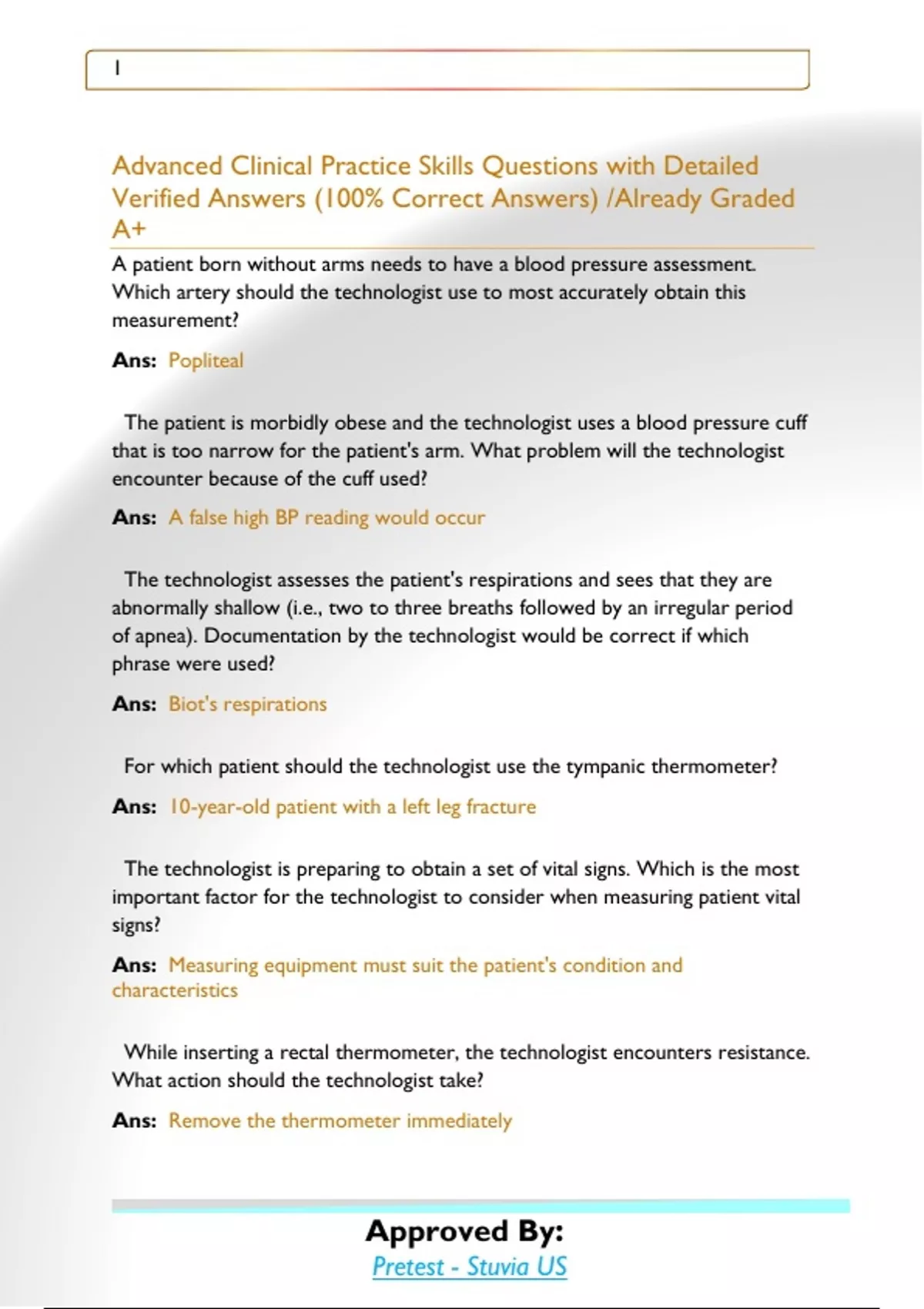 Advanced Clinical Practice Skills Questions with Detailed