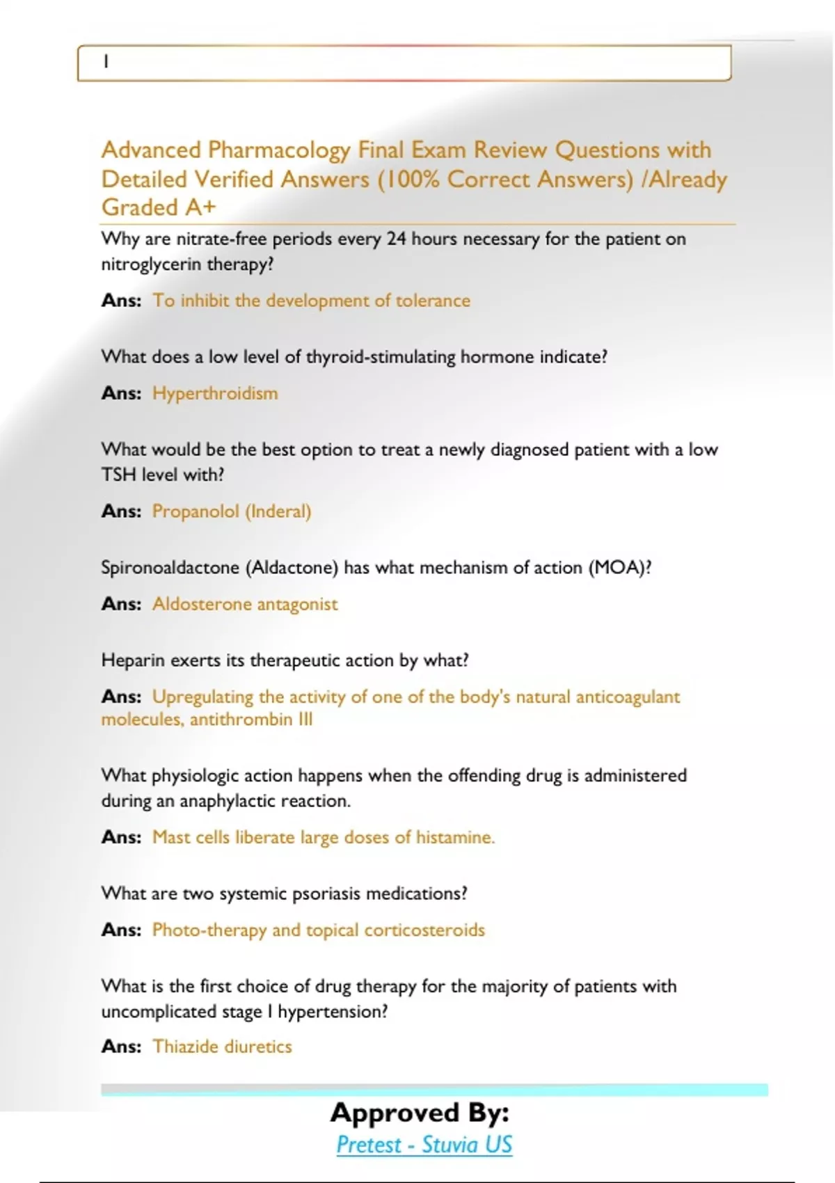 Advanced Pharmacology Final Exam Review Questions with