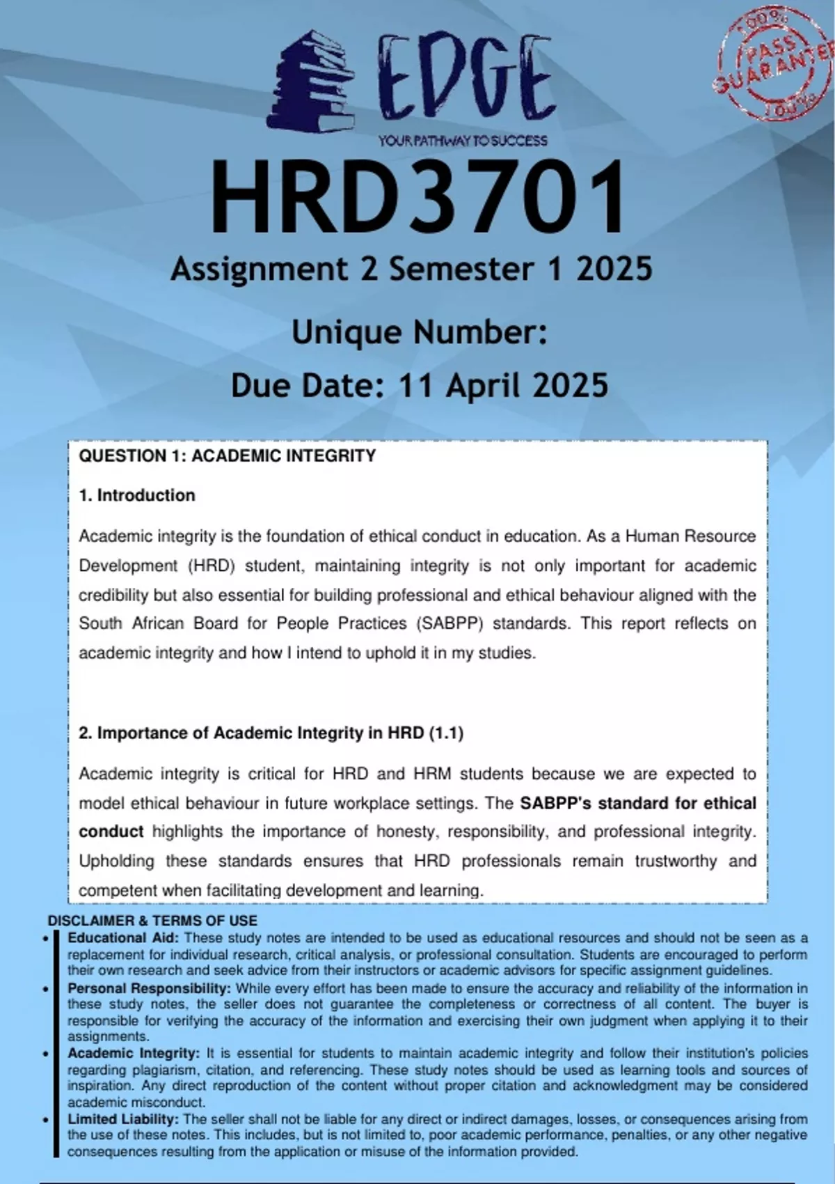 Academic integrity is the foundation of ethical conduct in education. As a Human Resource