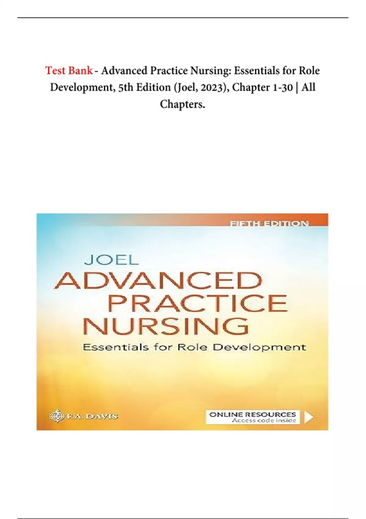 Test Bank - Advanced Practice Nursing: Essentials for Role Development, 5th Edition (Joel, 2023), Chapter 1-30 | All Chapters