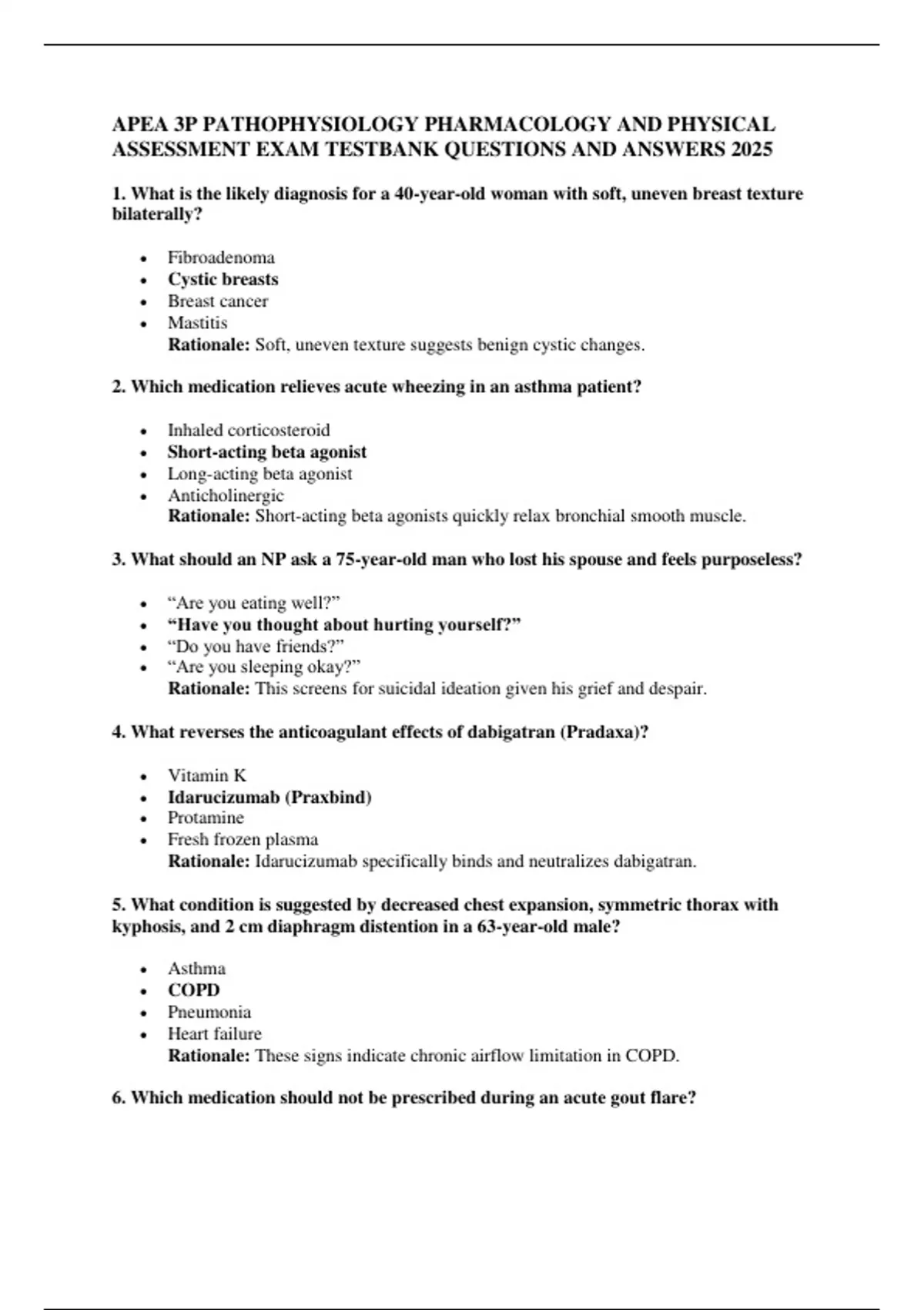 APEA 3P PATHOPHYSIOLOGY PHARMACOLOGY AND PHYSICAL