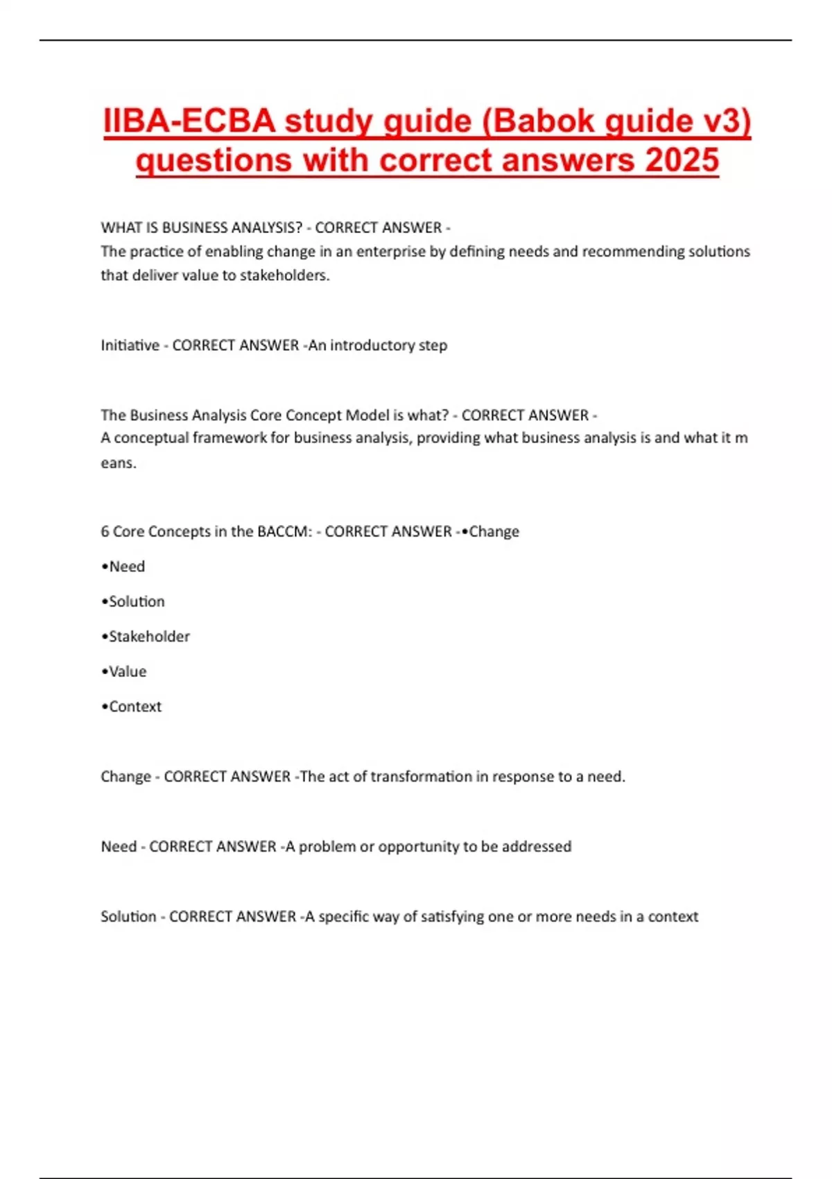 IIBA-ECBA study guide (Babok guide v3) questions with correct answers 2025