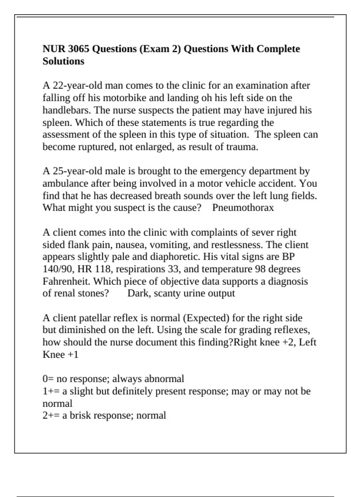 sided flank pain, nausea, vomiting, and restlessness. The client