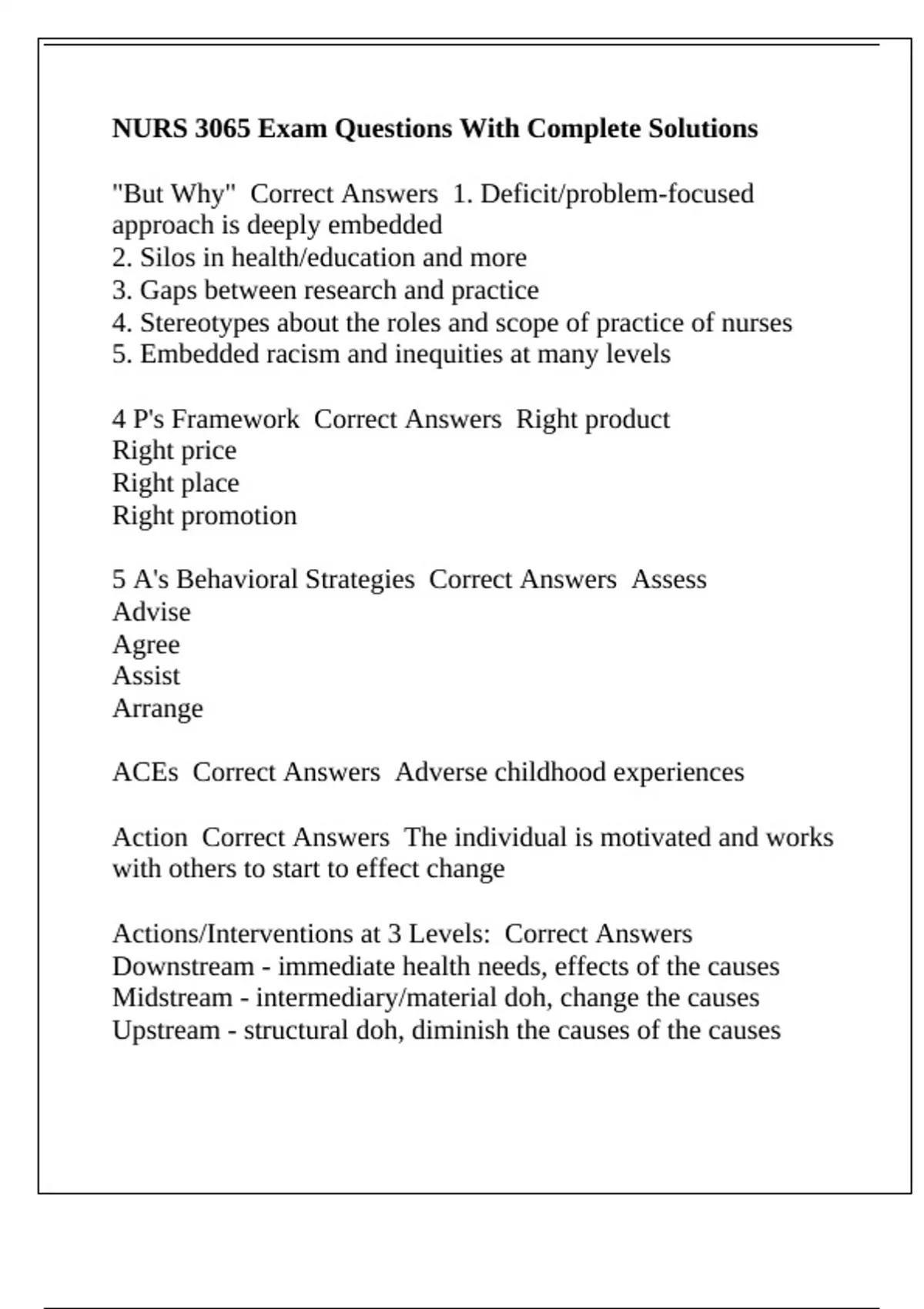 Actions/Interventions at 3 Levels: Correct Answers