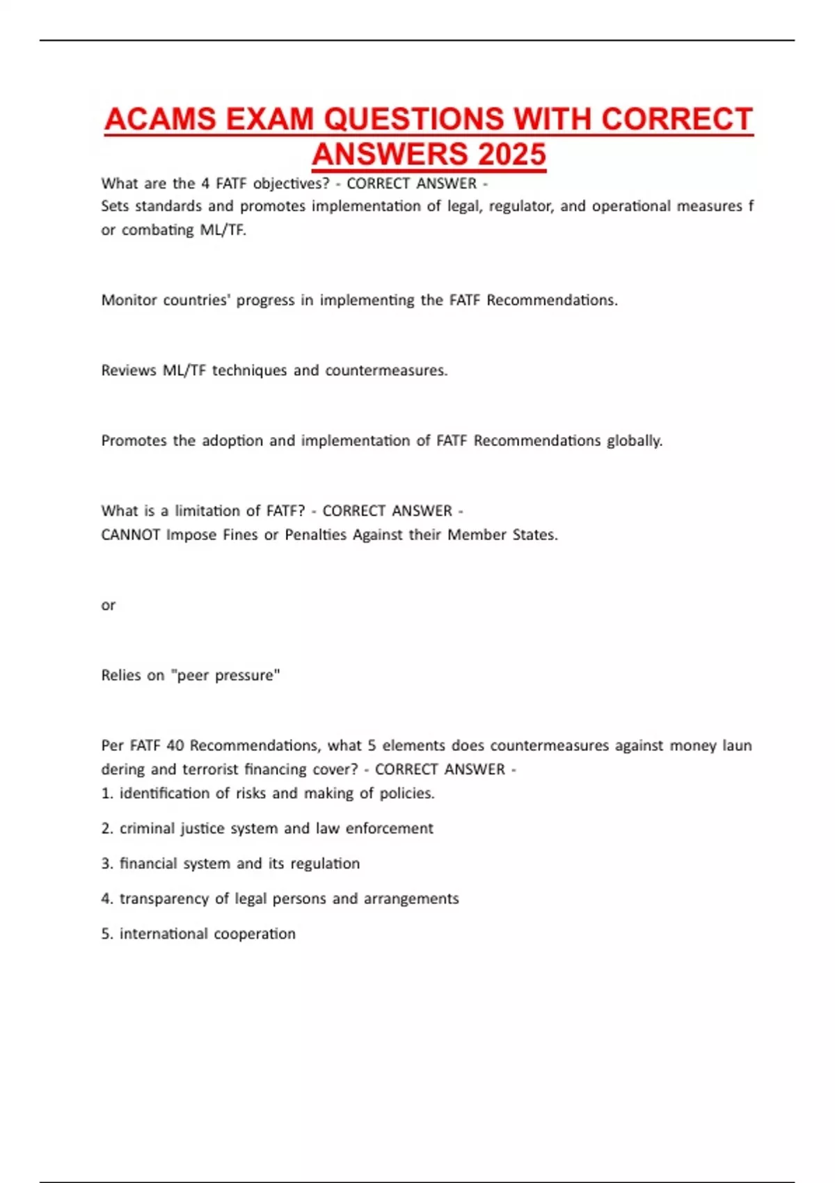 ACAMS EXAM QUESTIONS WITH CORRECT ANSWERS 2025