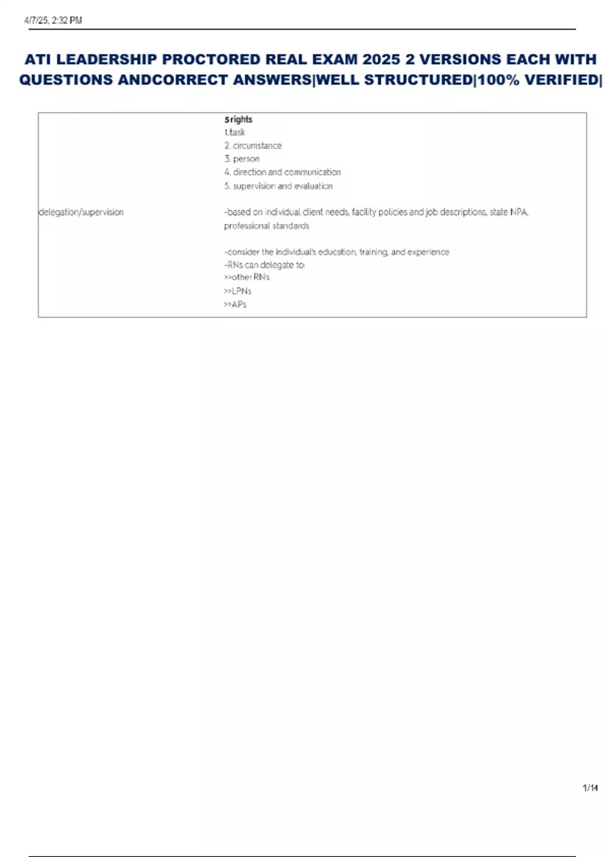 ATI LEADERSHIP PROCTORED REAL EXAM 2025 2 VERSIONS EACH WITH QUESTIONS ANDCORRECT ANSWERS|WELL STRUCTURED|100% VERIFIED