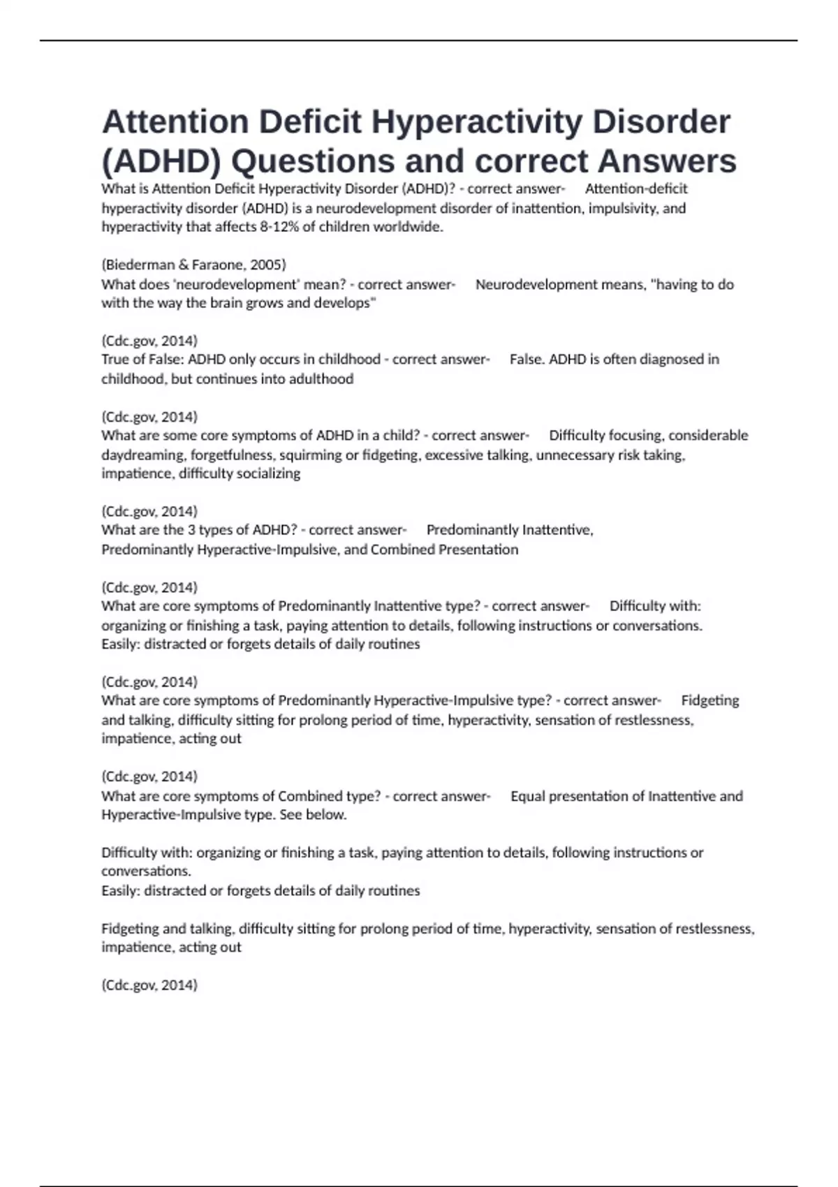 (ADHD) Questions and correct Answers