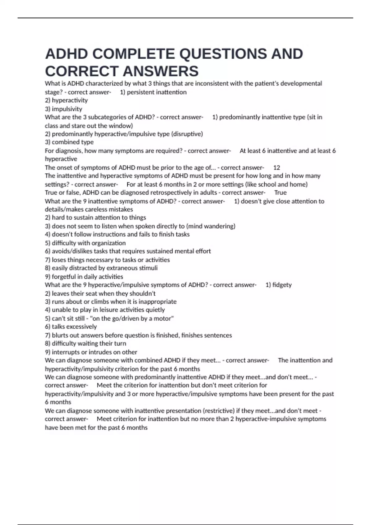 meet... - correct answer-✅They meet criterion for hyperactivity-impulsivity but not criterion for