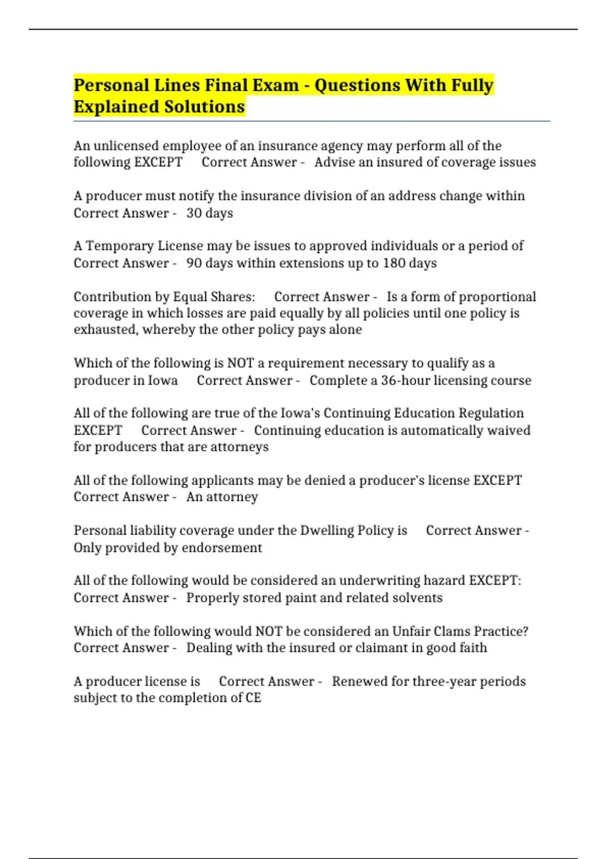 following EXCEPT Correct Answer - Advise an insured of coverage issues