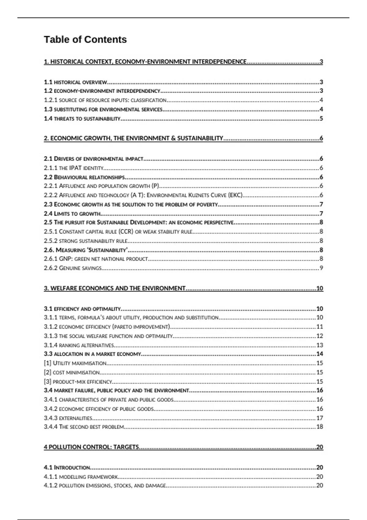3. WELFARE ECONOMICS AND THE ENVIRONMENT.........................................................................10