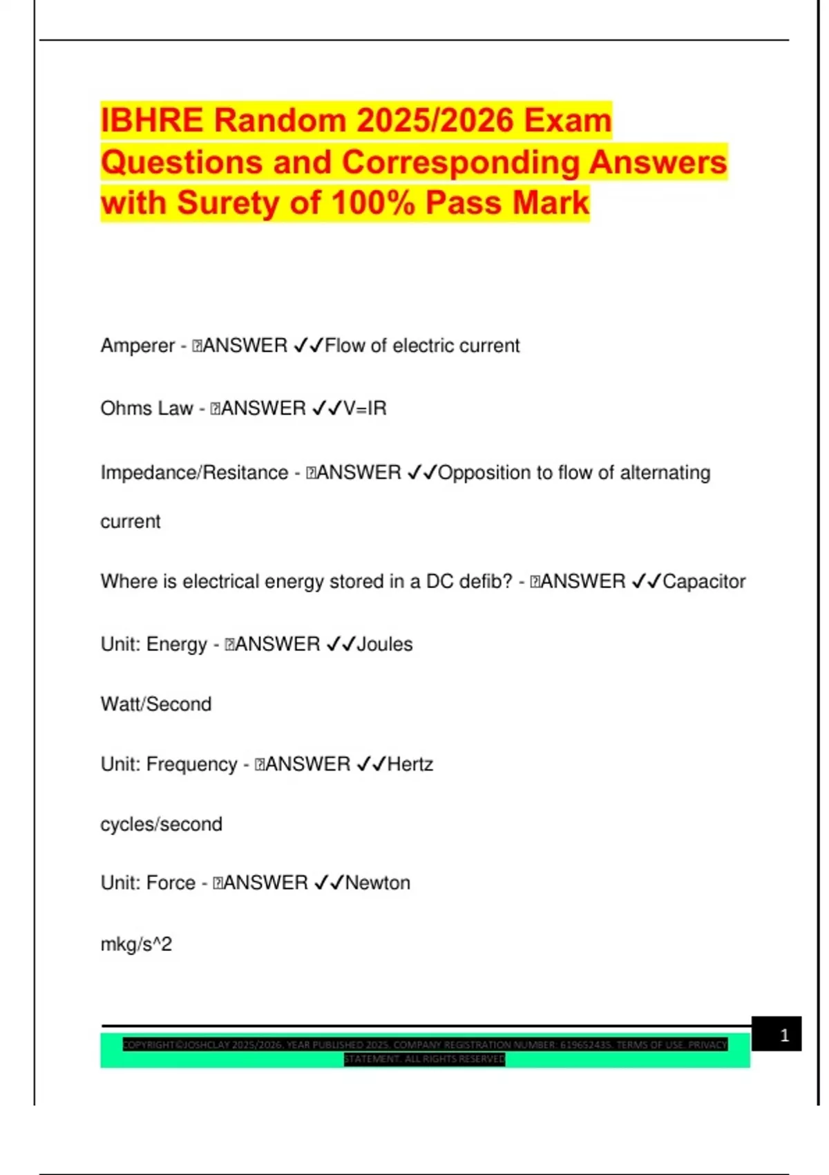 ,Unit: Power - 🧠ANSWER ✔✔Watt