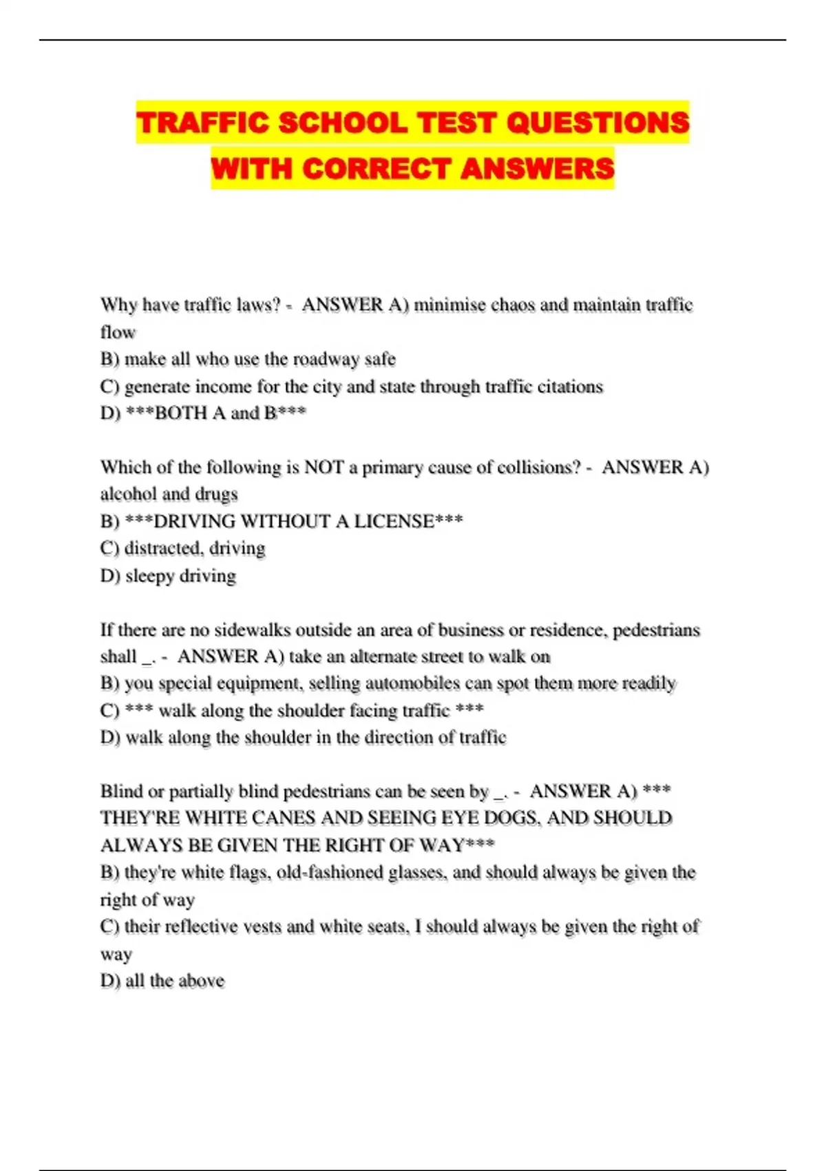 Why have traffic laws? - ANSWER A) minimise chaos and maintain traffic