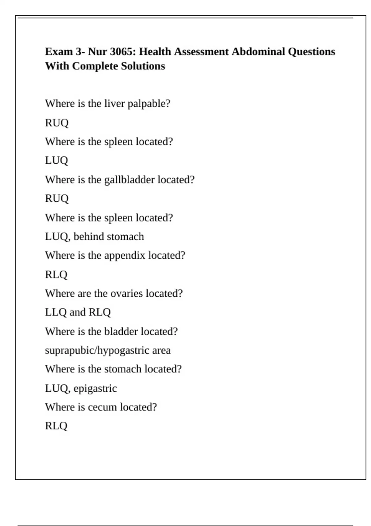 liver, pancreas, spleen, adrenal glands, kidneys, ovaries, uterus--