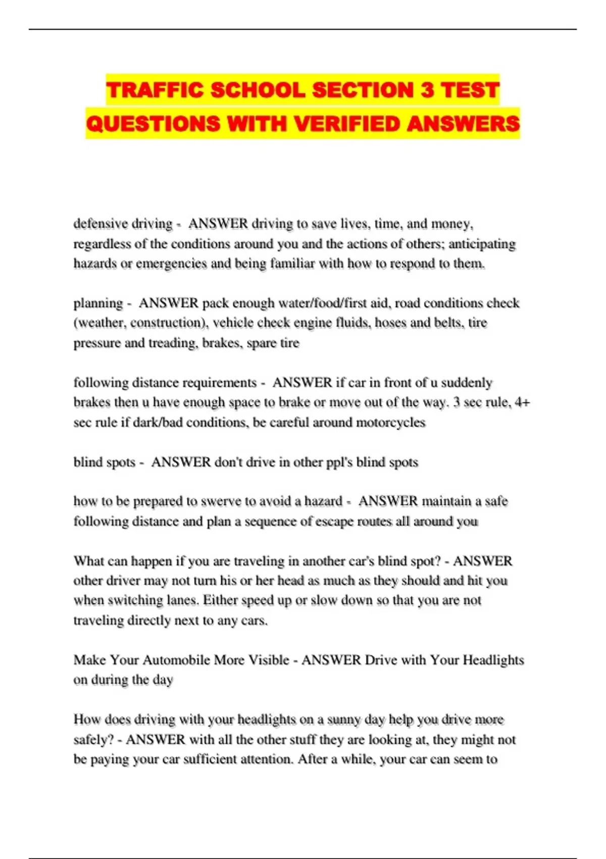 TRAFFIC SCHOOL SECTION 3 TEST
