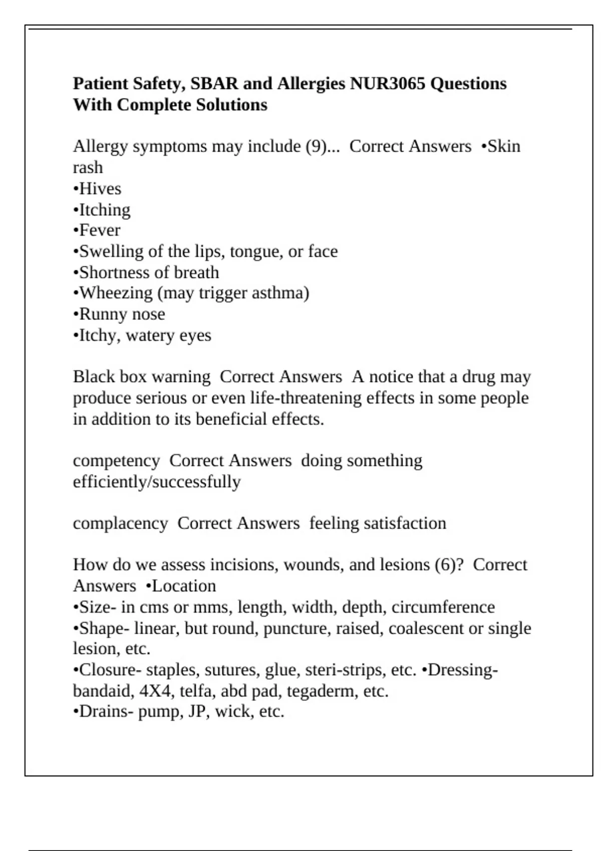 Allergy symptoms may include (9)... Correct Answers •Skin