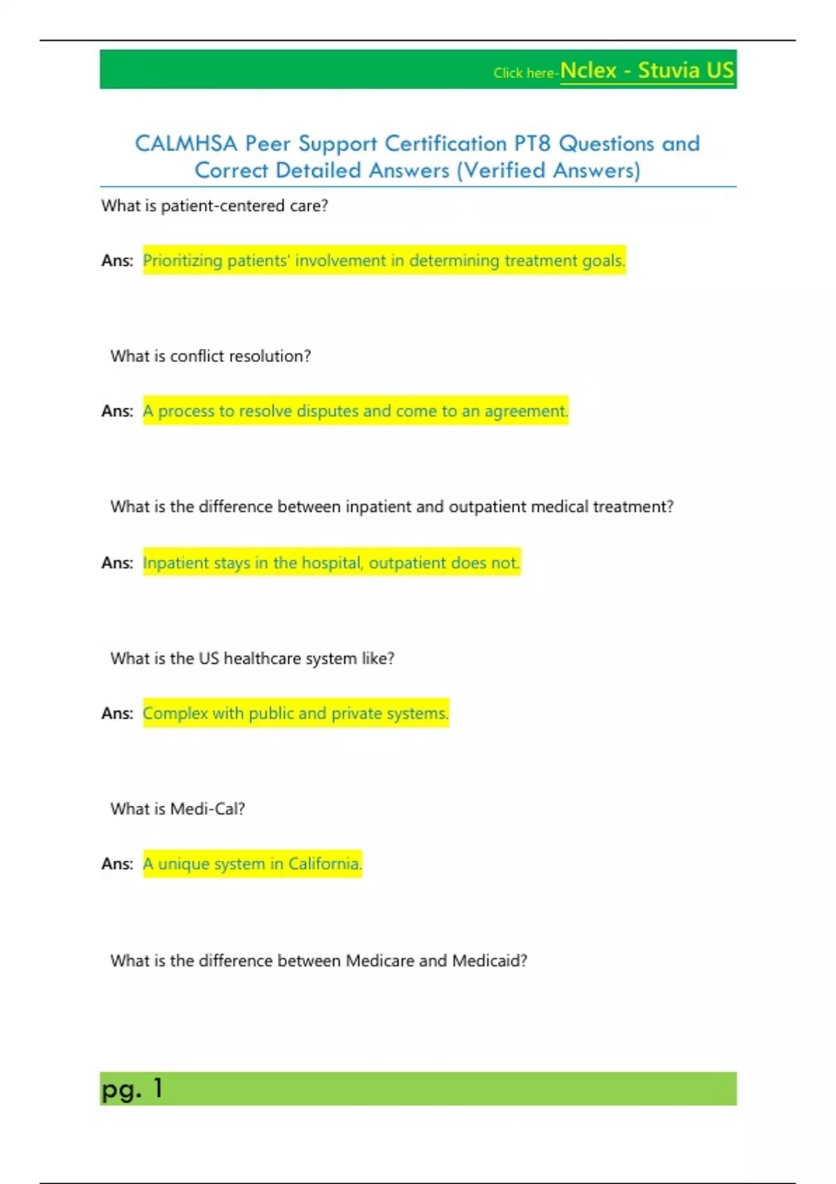CALMHSA Peer Support Certification PT8 Questions and Correct Detailed Answers (Verified Answers)