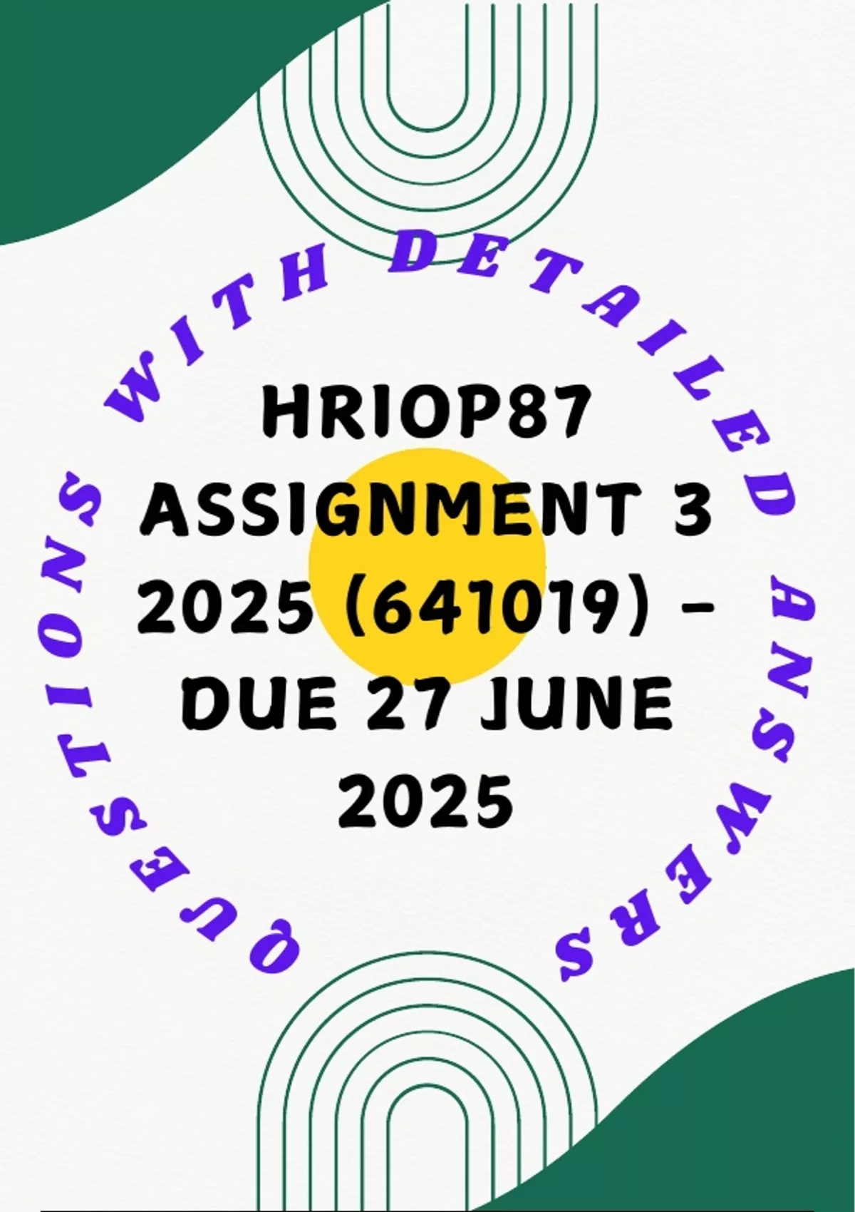 HRIOP87 Assignment 3 2025 (641019) - DUE 27 JUNE 2025 QUESTIONS WITH RESPECTIVE ANSWERS