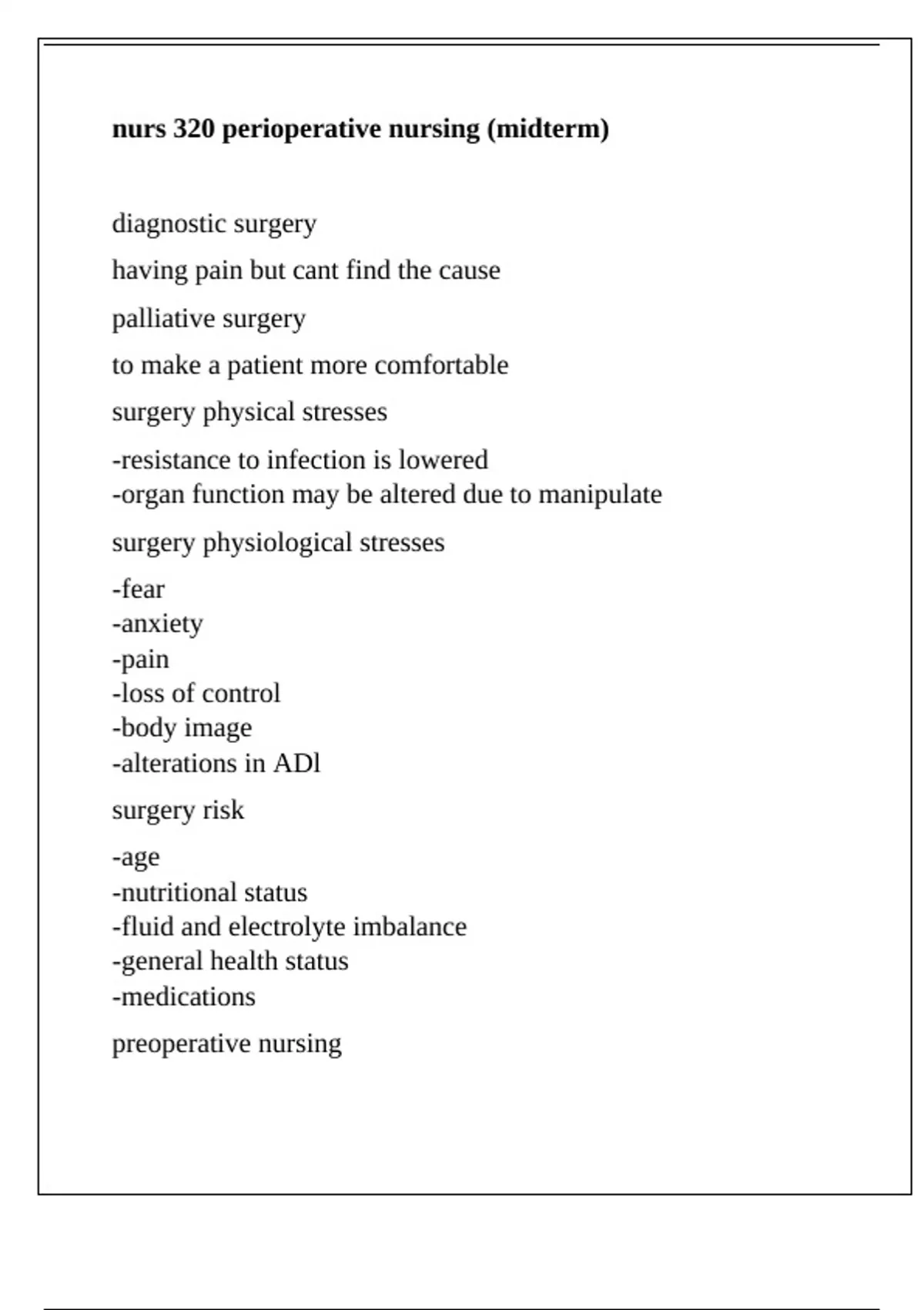 nurs 320 perioperative nursing (midterm)