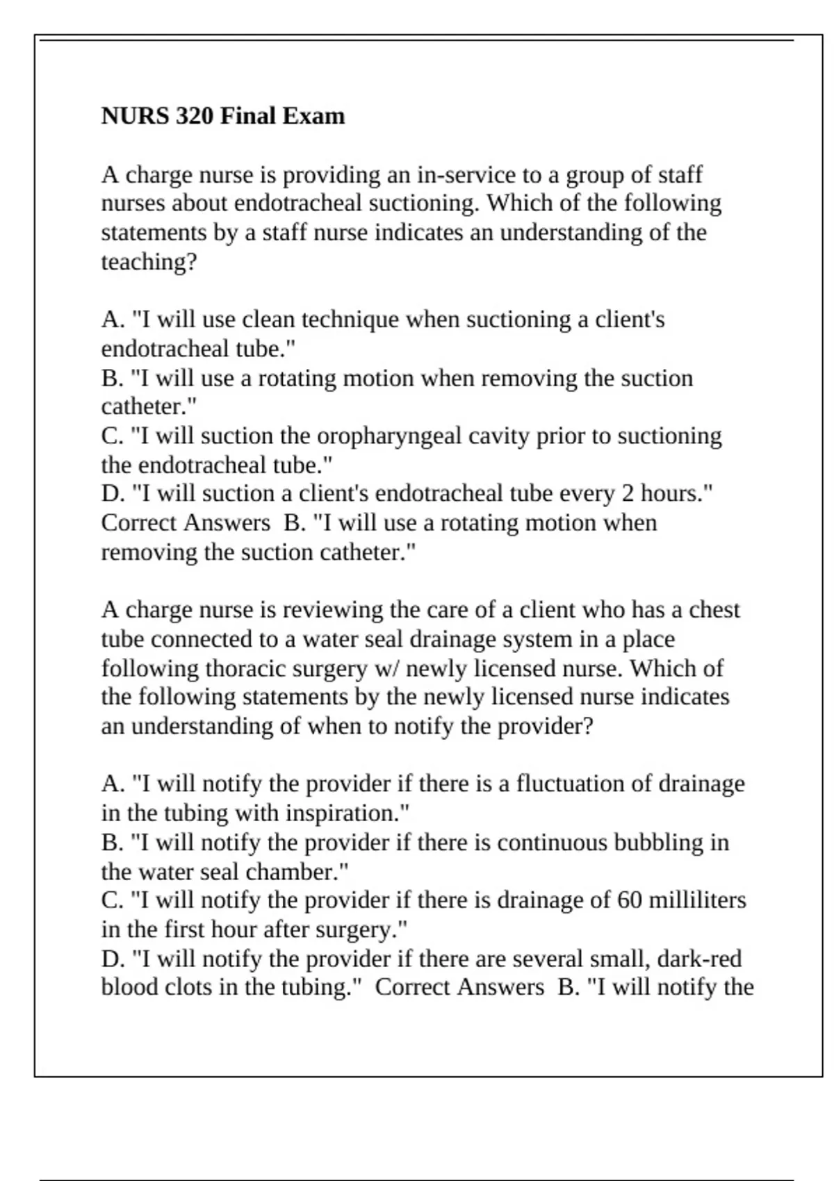 blood clots in the tubing." Correct Answers B. "I will notify the