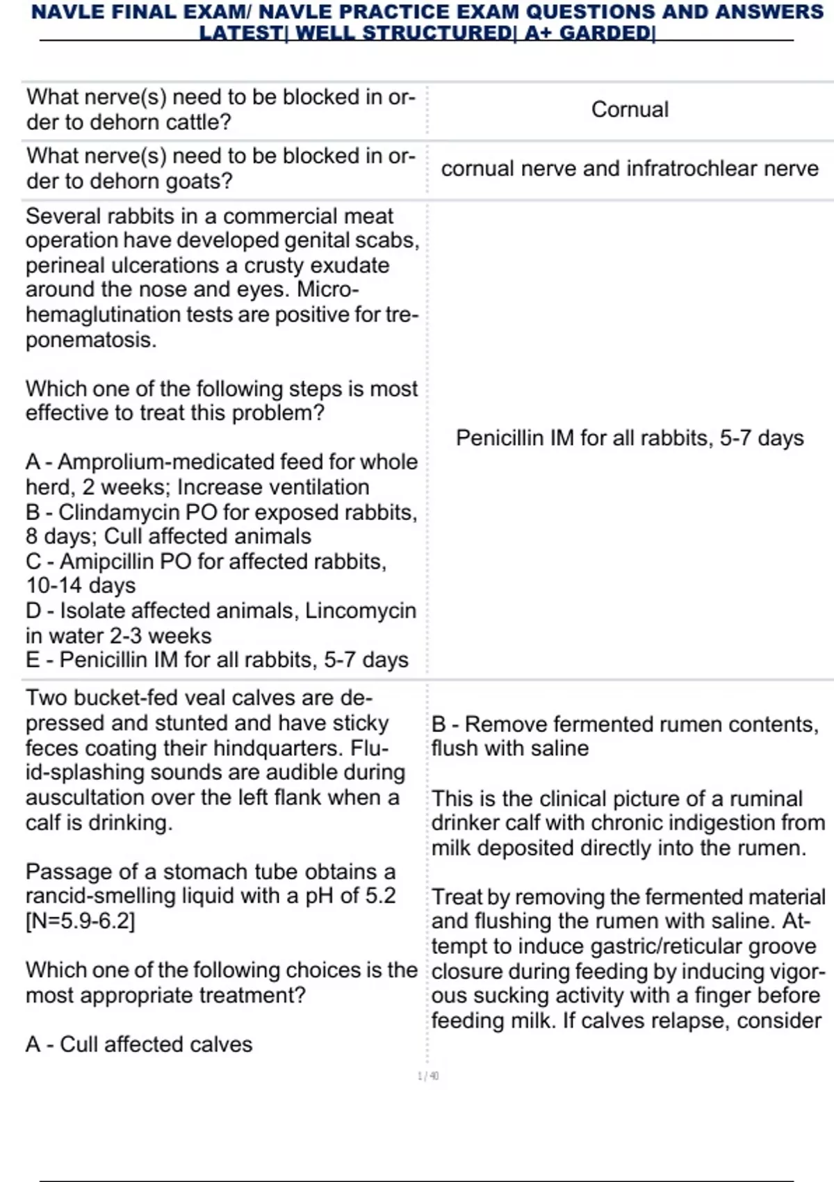 ,NAVLE FINAL EXAM/ NAVLE PRACTICE EXAM QUESTIONS AND ANSWERS